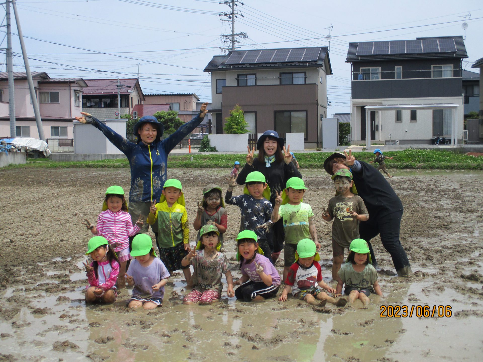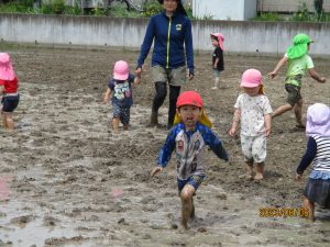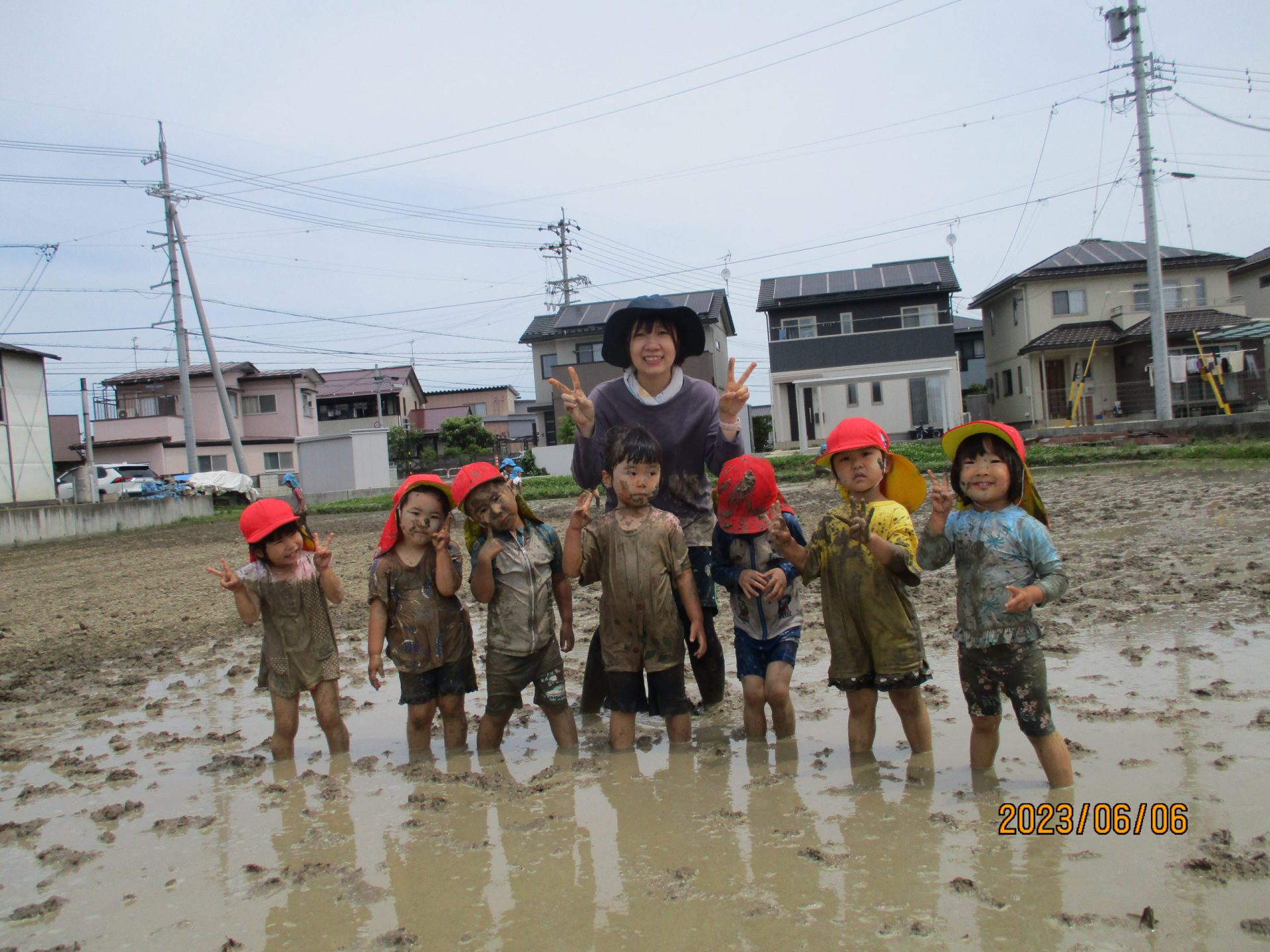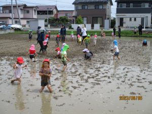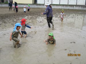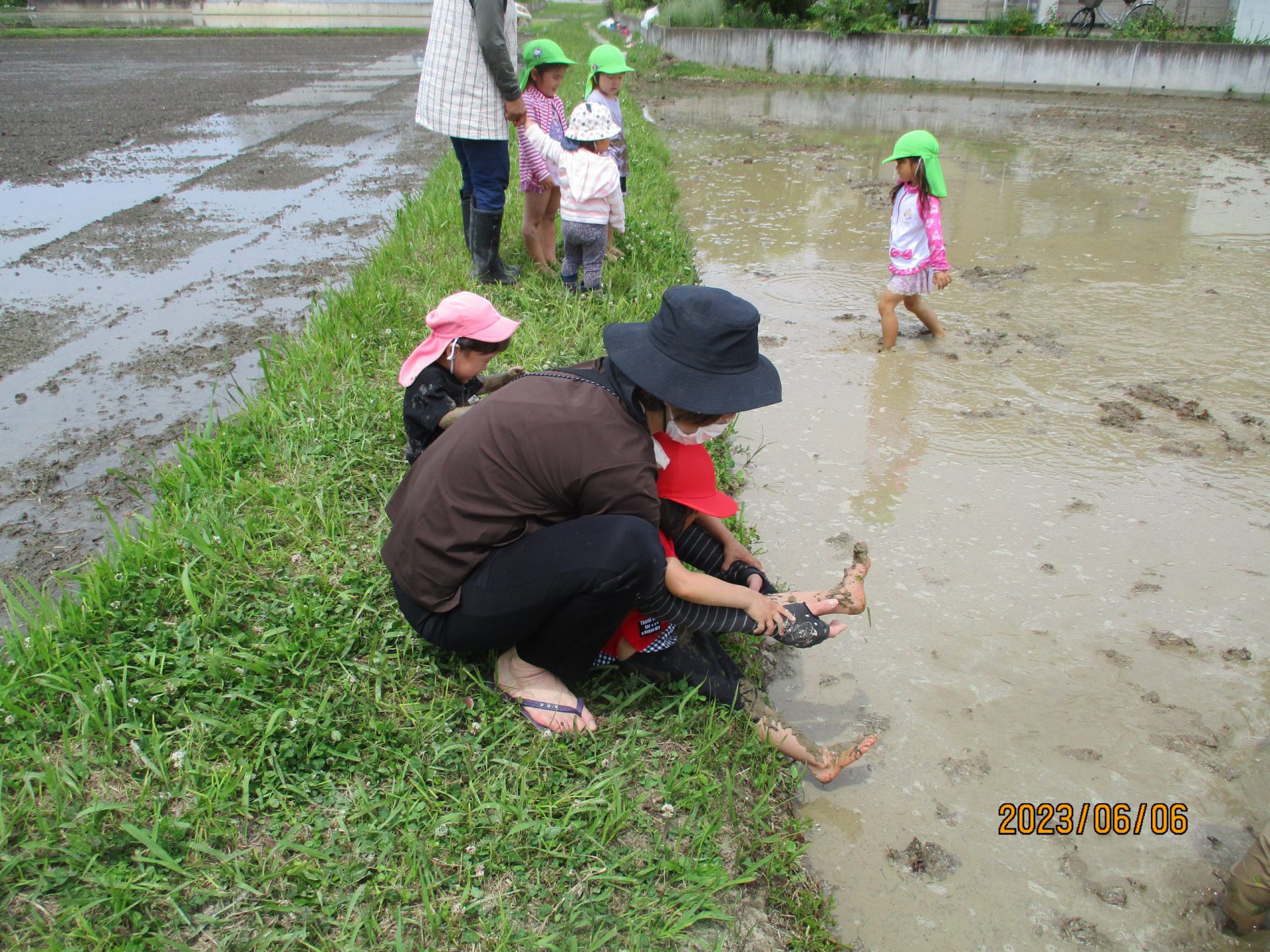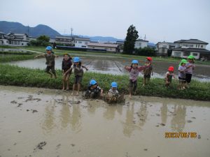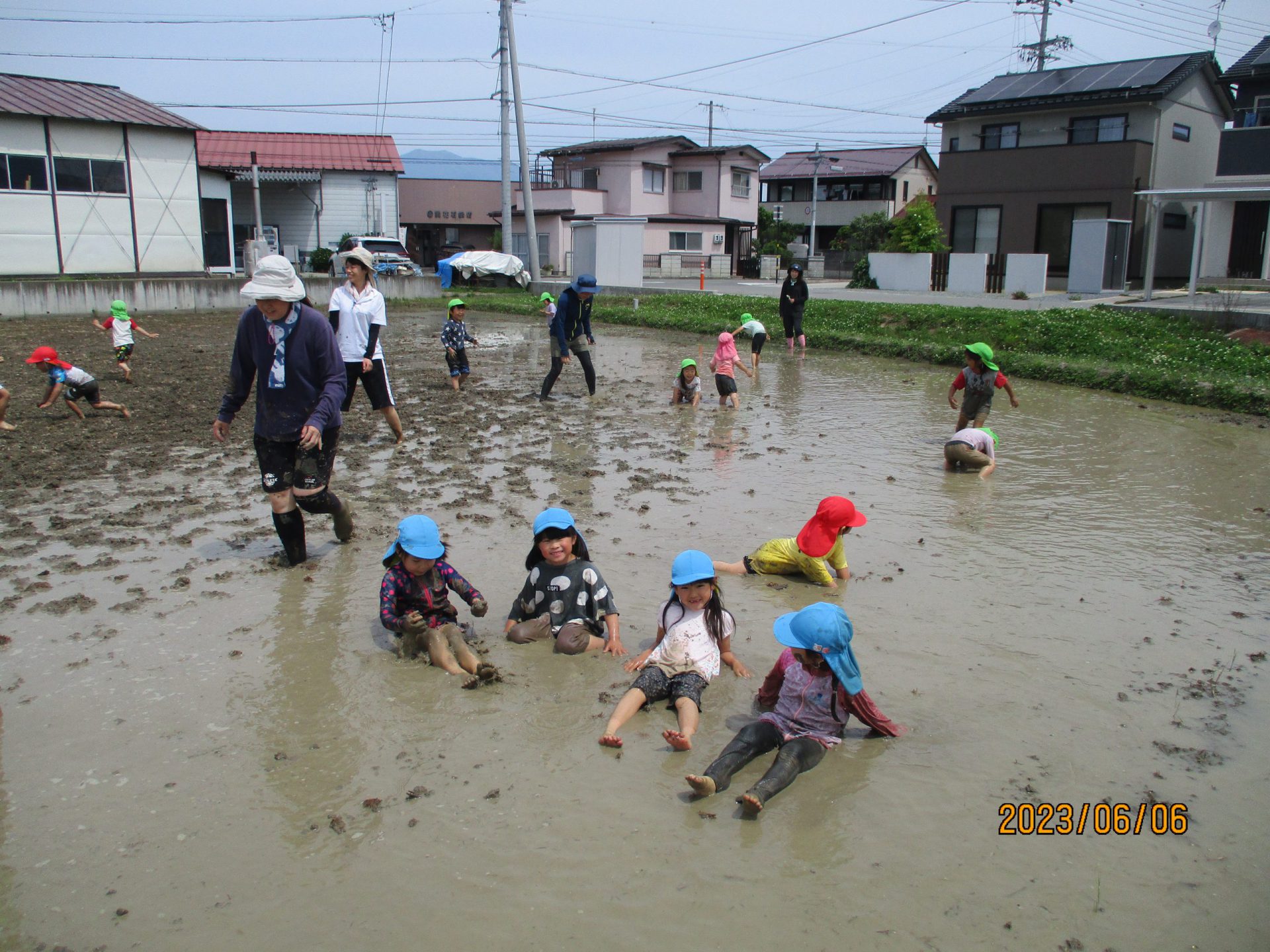 地域の方に「田植えをする前にうちの田んぼで遊んでいいよ」と、声をかけていただきました。