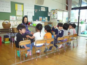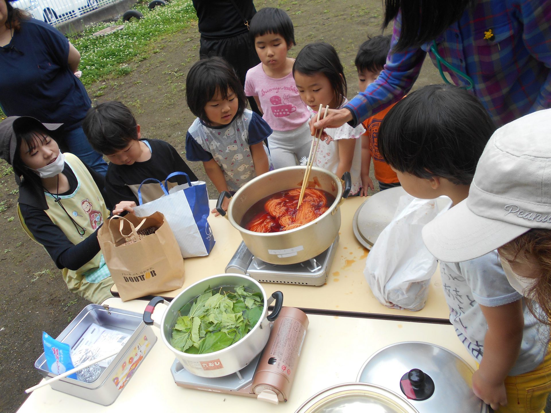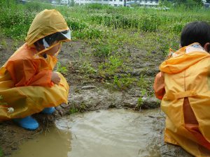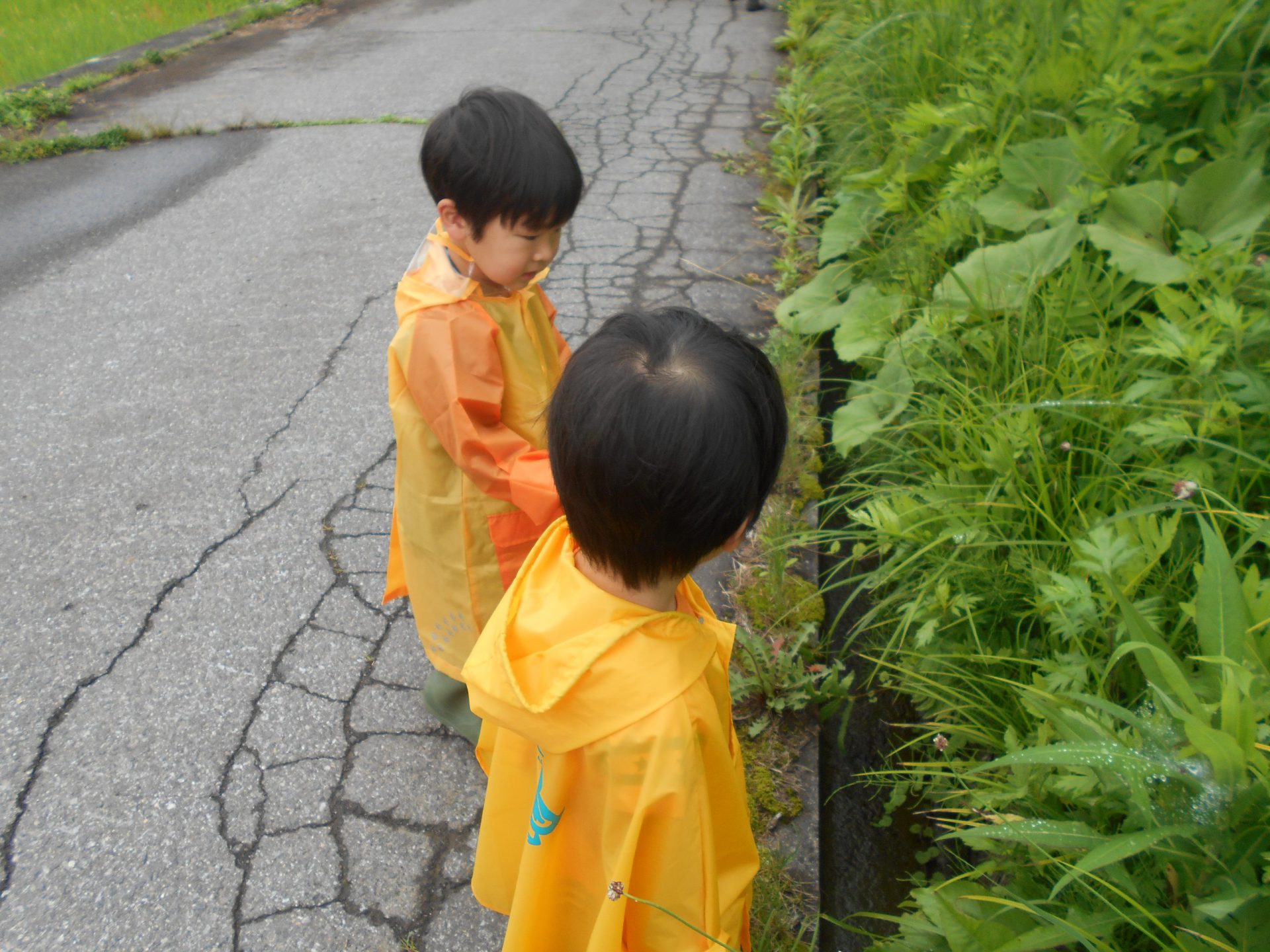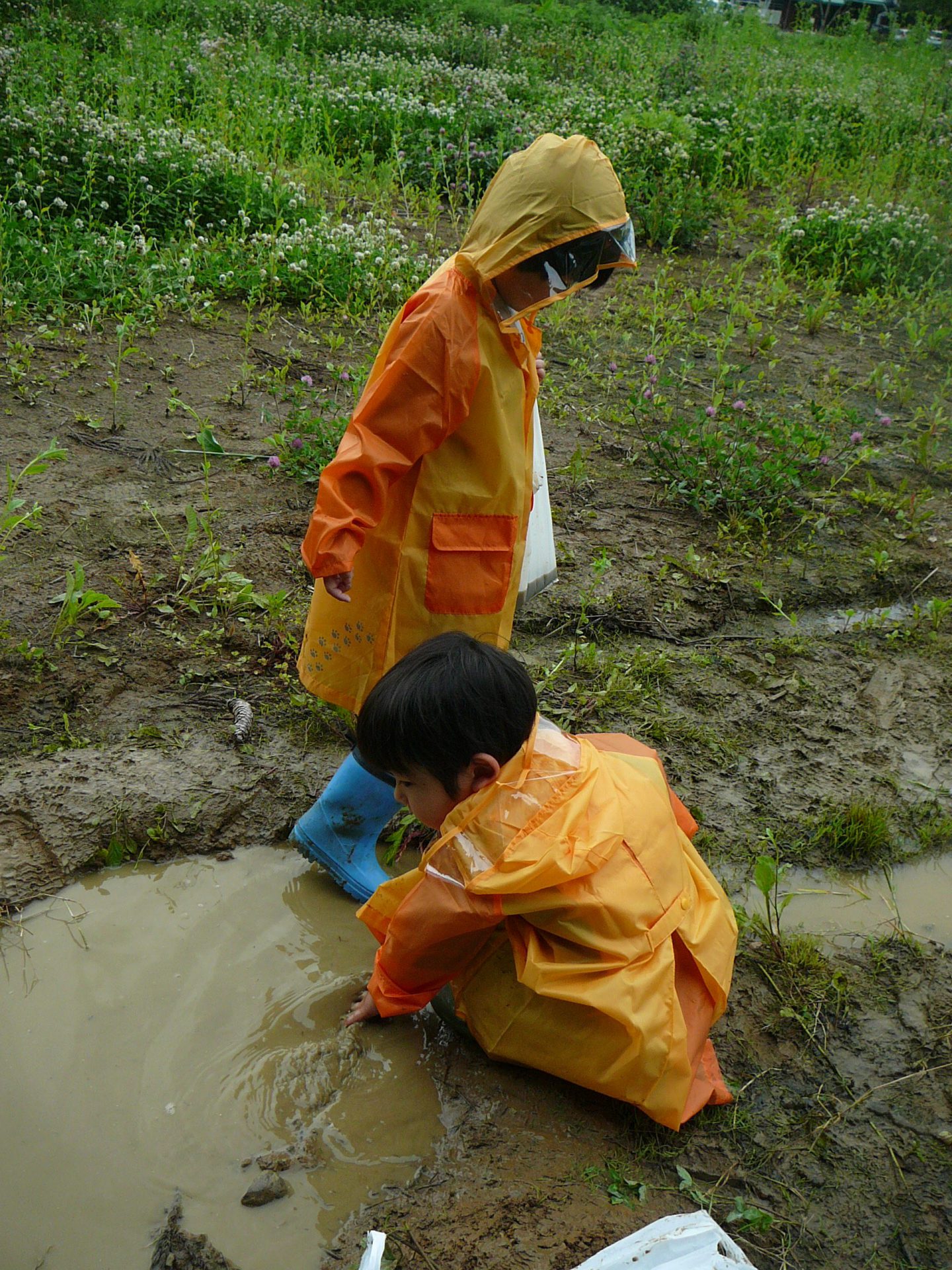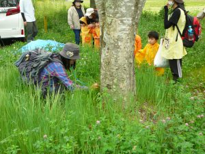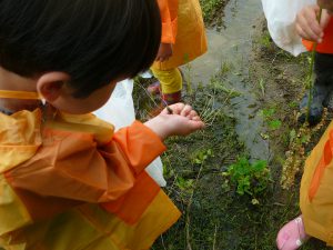 生き物大好きな年少さんが見つけました。素早く捕まえる腕前はさすがです。