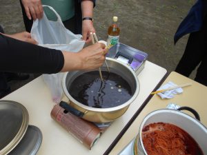やけどしないように、慎重に入れていきます。どんな色になったかな?