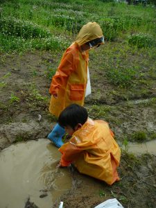 「あっ、オタマジャクシがいる!」「カエルになってる!」