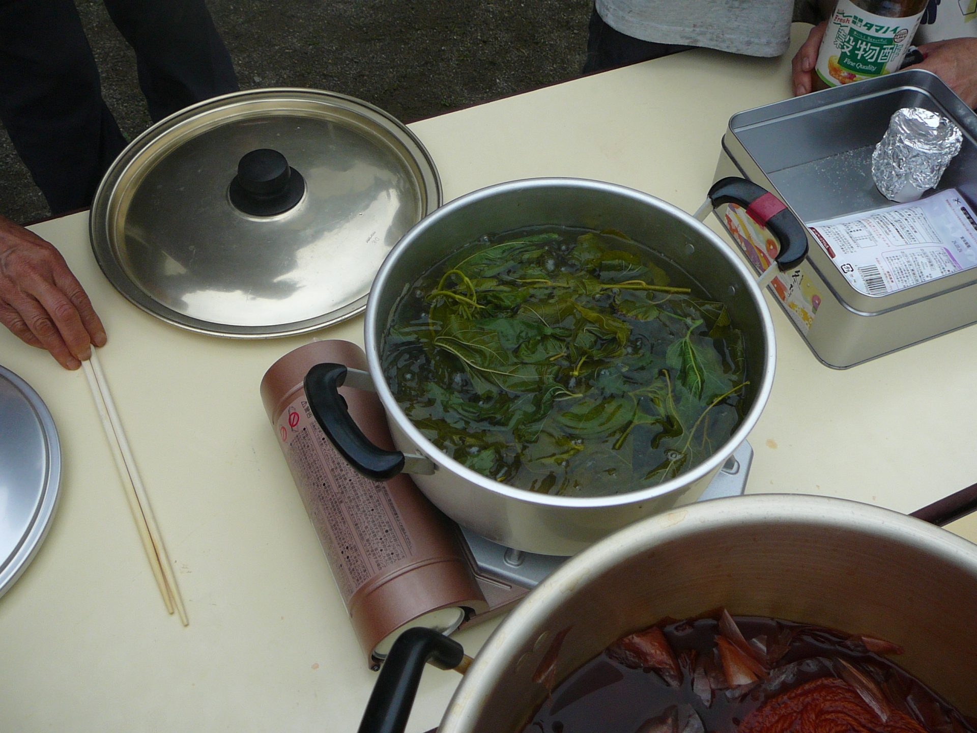 右から タマネギ(塩)、桑の葉(みょうばん)、タマネギ(みょうばん)、まつぼっくり(塩)、まつぼっくり(みょうばん)、コンフリー(塩)です。