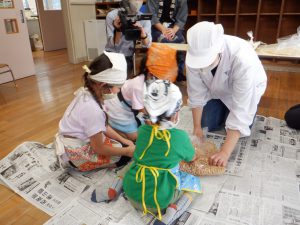 なかなか力のいる作業ですが、お友だちと一緒にやれば、楽しんでやれます。