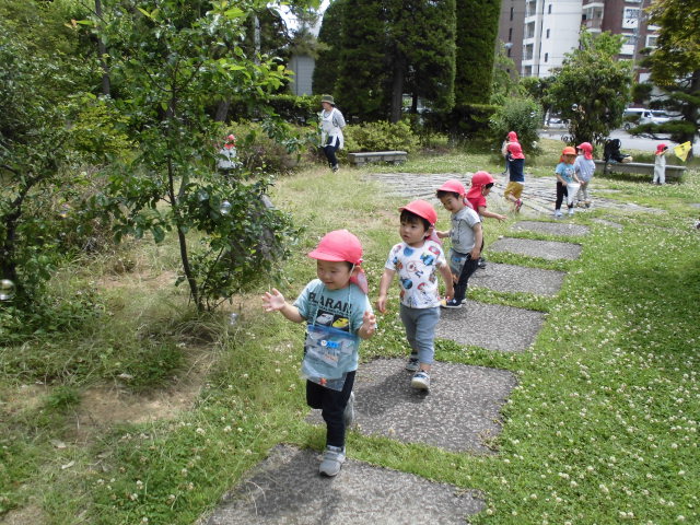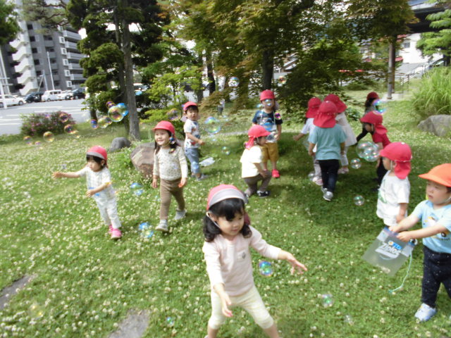 シャボン玉を楽しんだり、自然豊かな空間で、
