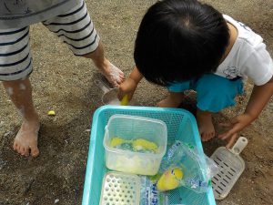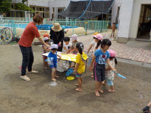 液をつけるときに年長さんが「こっちの方が(液)がたくさんあるよ」と年少さんに教えてあげる場面も見られました。