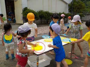 年長さんは経験もあるので大きなしゃぼん玉を作っていましたが、