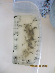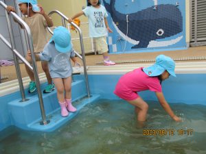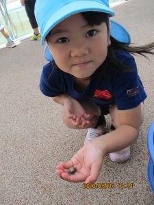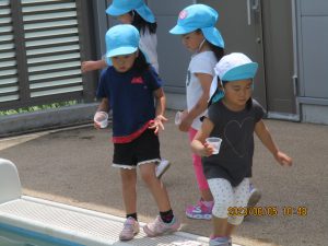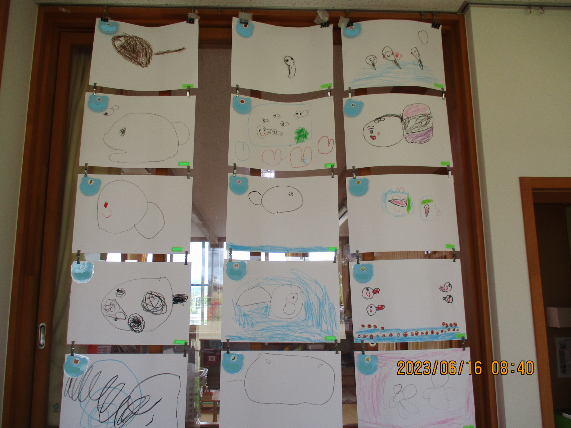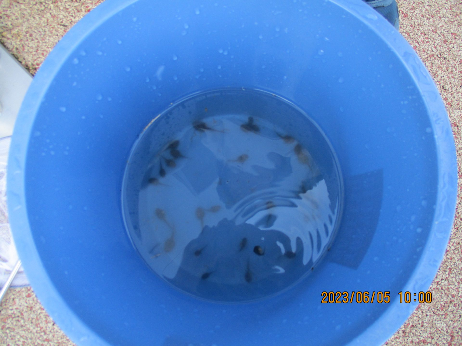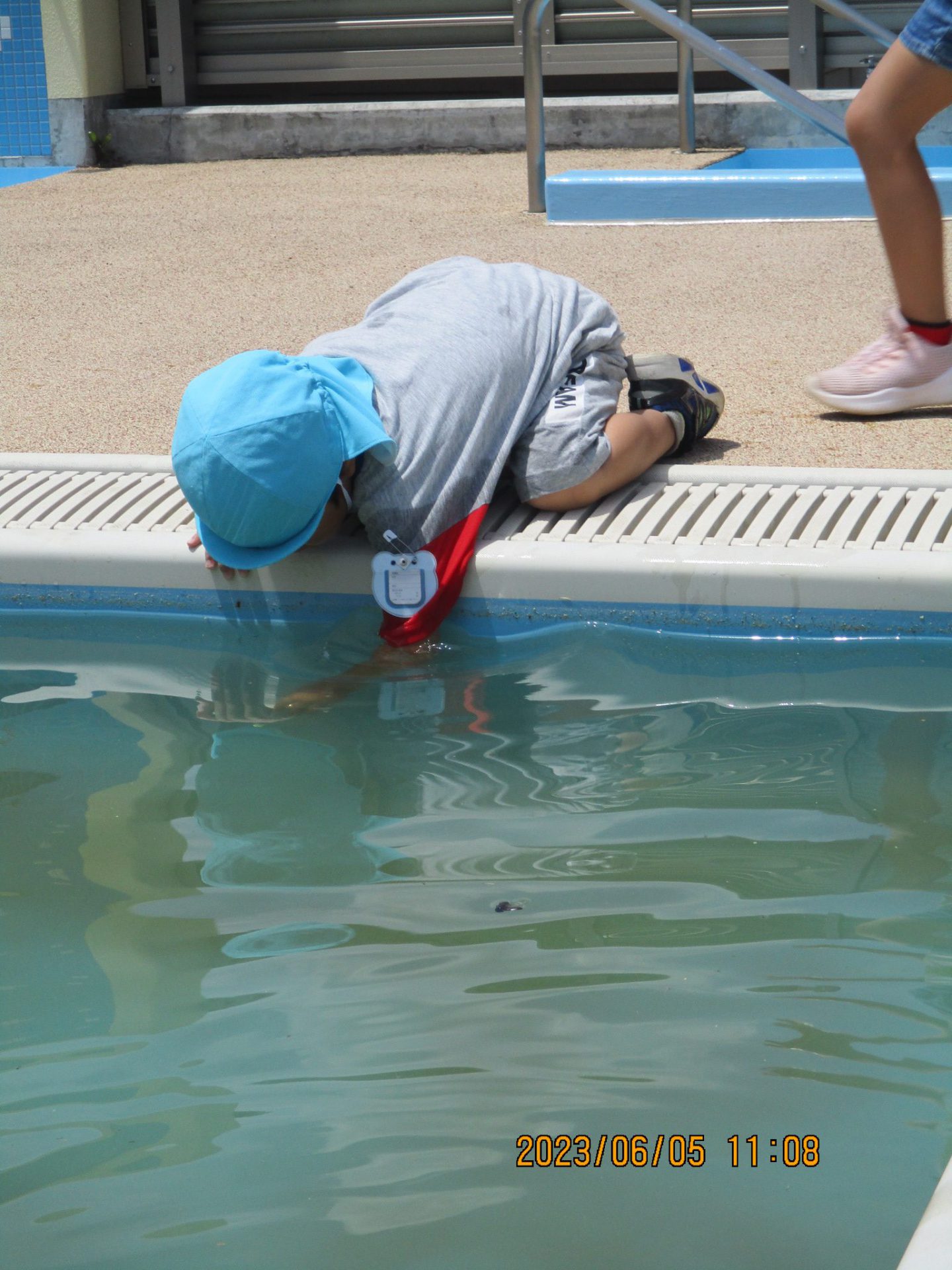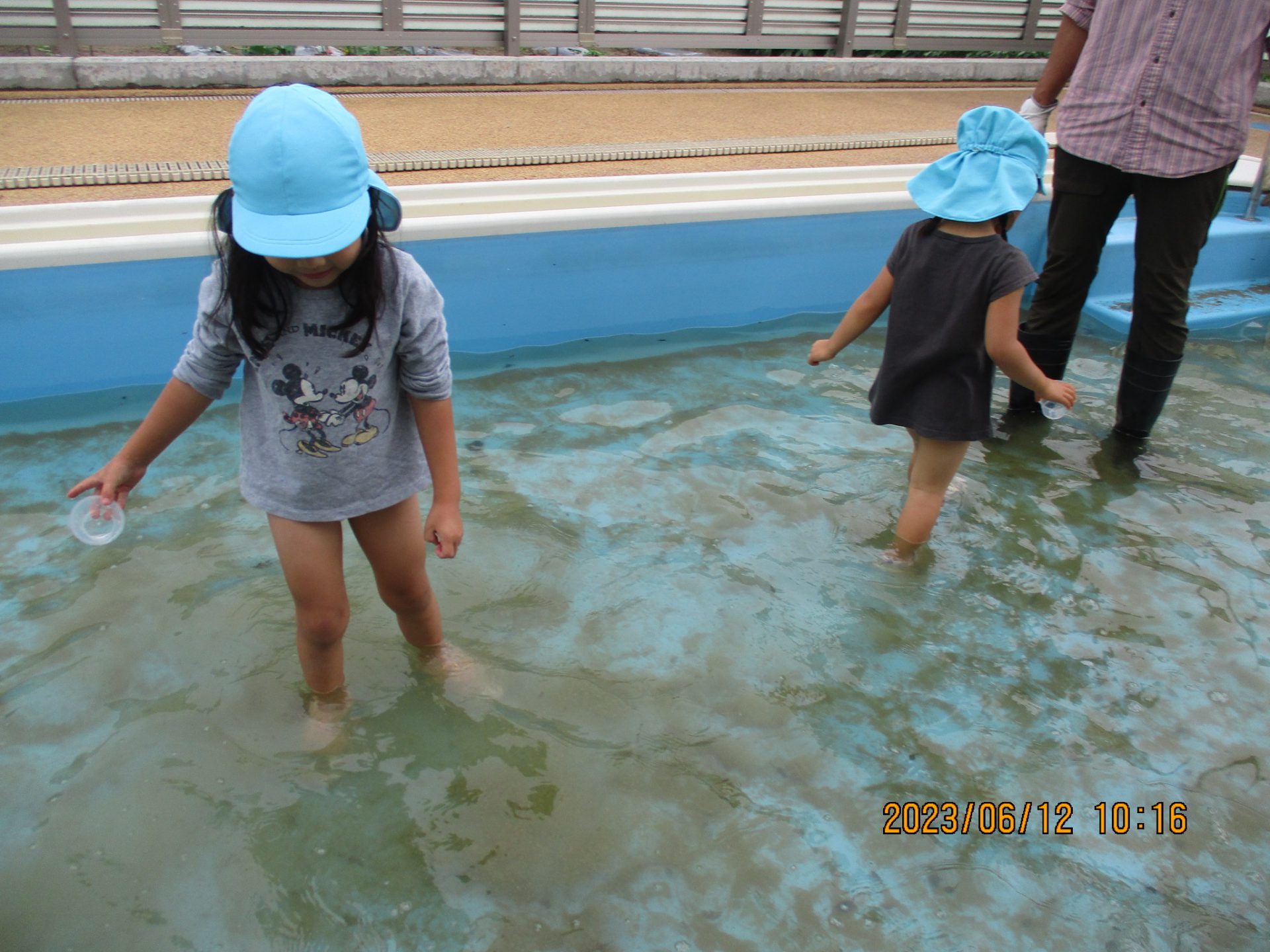 年少の時、おたまじゃくしがプールにいるのを見た、年中ぱんだぐみさん。