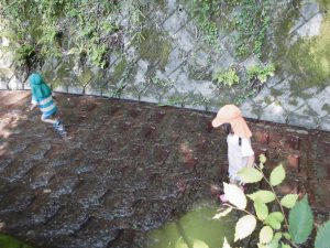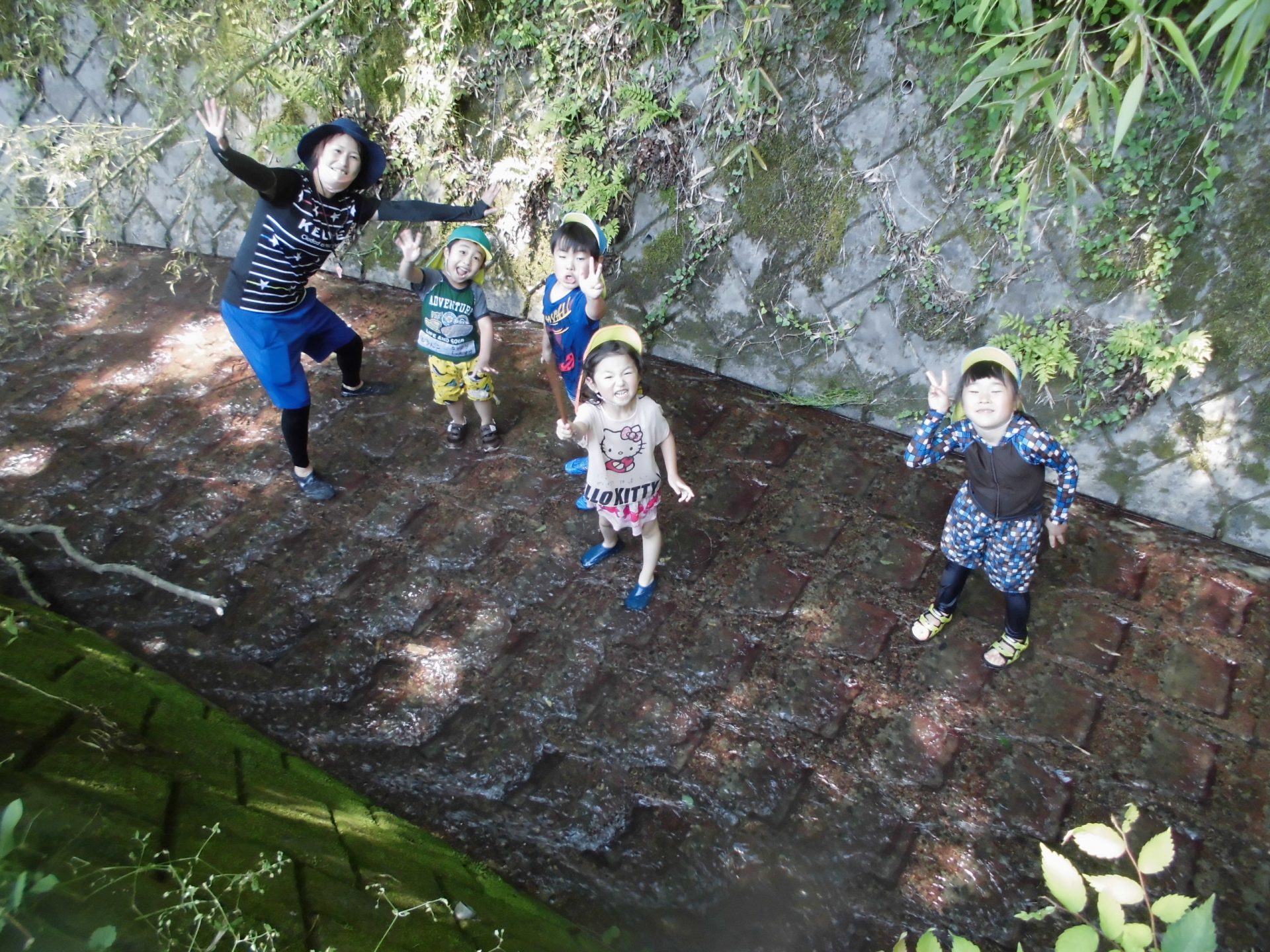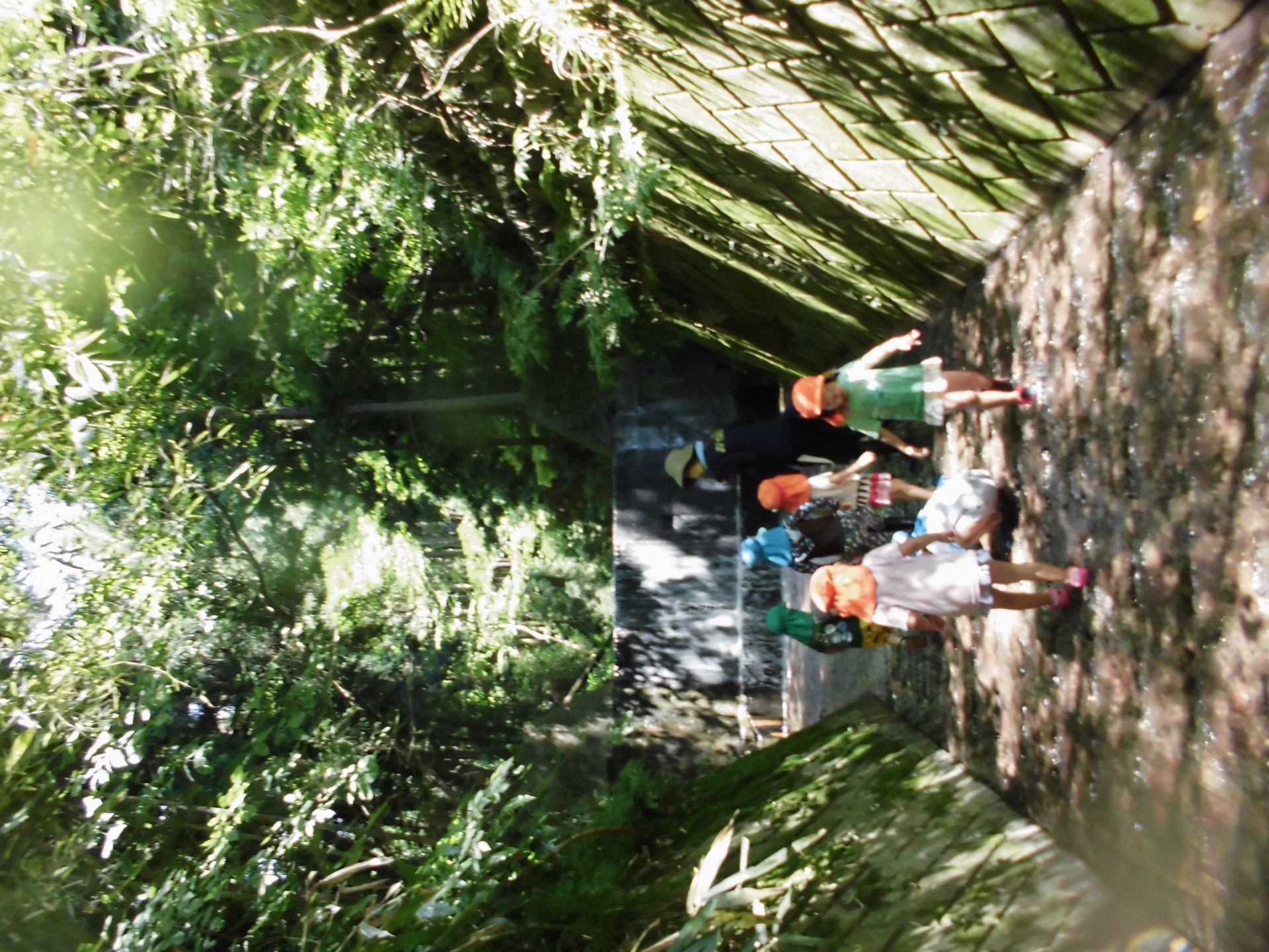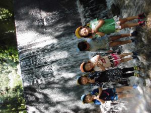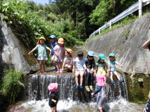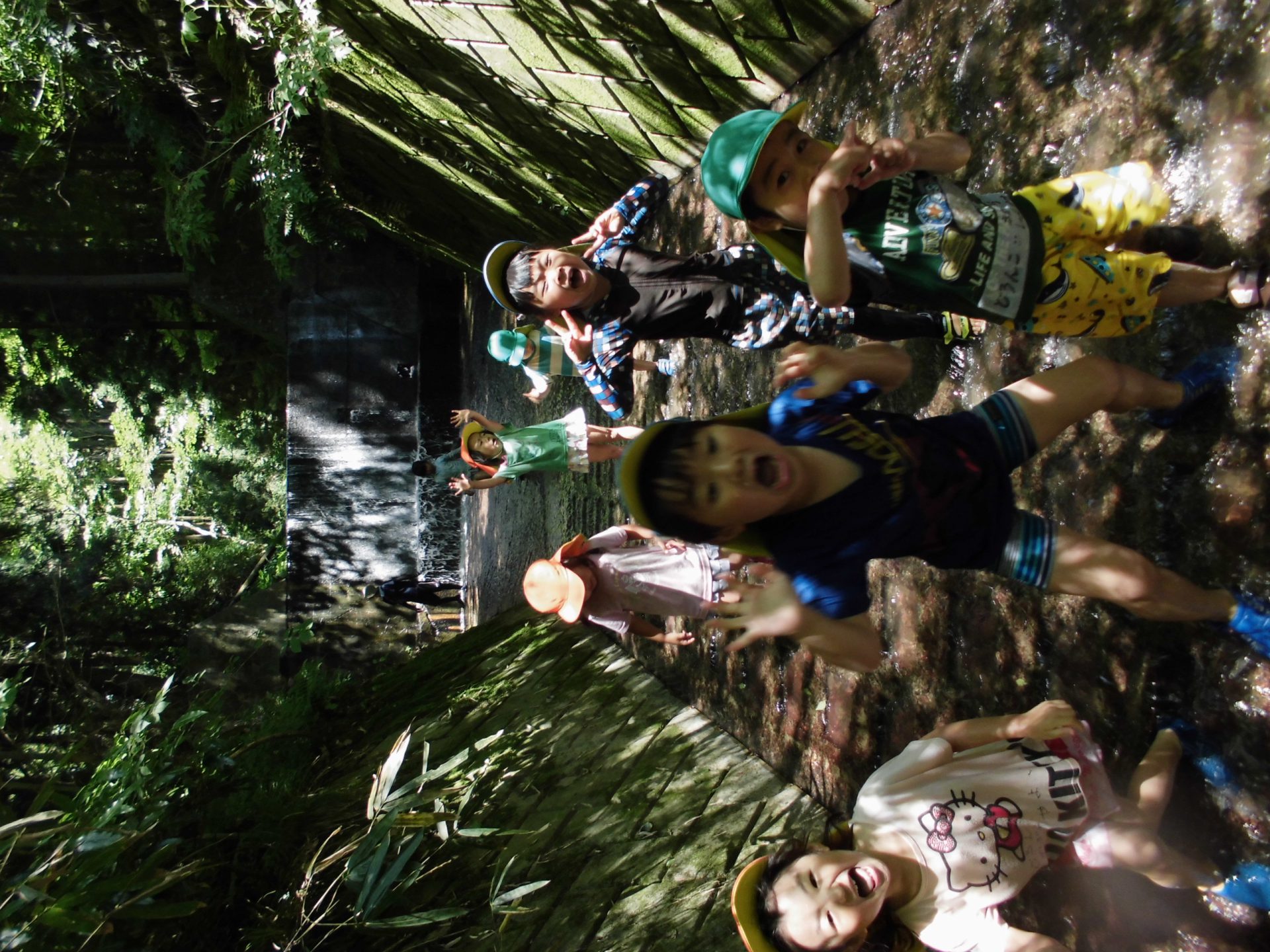 「怖い」と戸惑っている子や小さいお友だちに、言葉をかけてあげたり手をつないであげたり、助け合いながら川遊び&滝修行でレベルアップ⤴