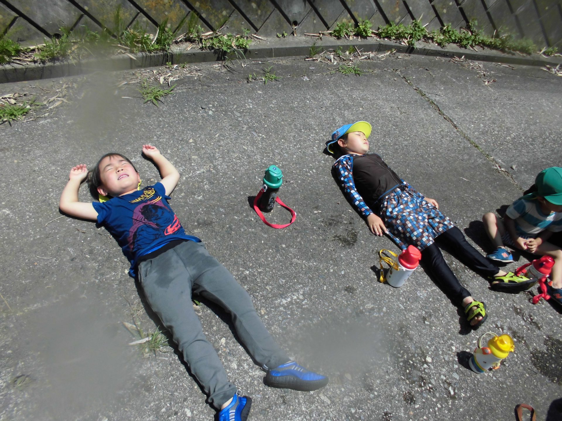 温かいコンクリートが気持ちよく、寝転がって一休み。