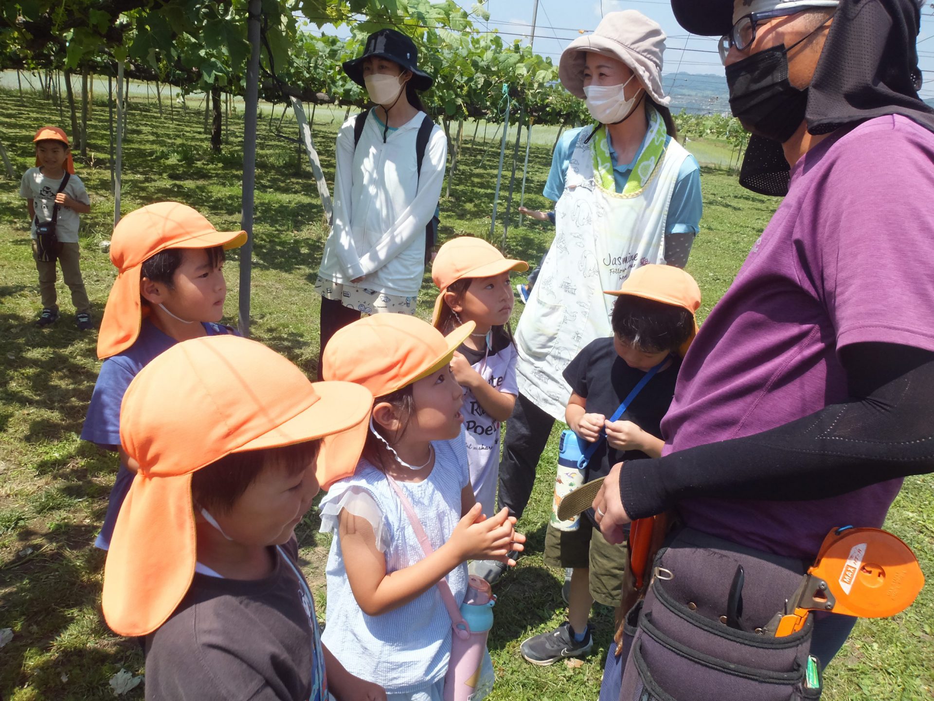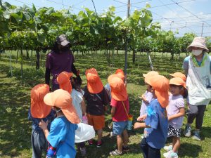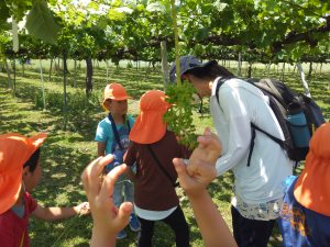「早く食べたいな。このブドウはいつ食べられるの?」と子ども達。