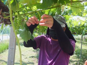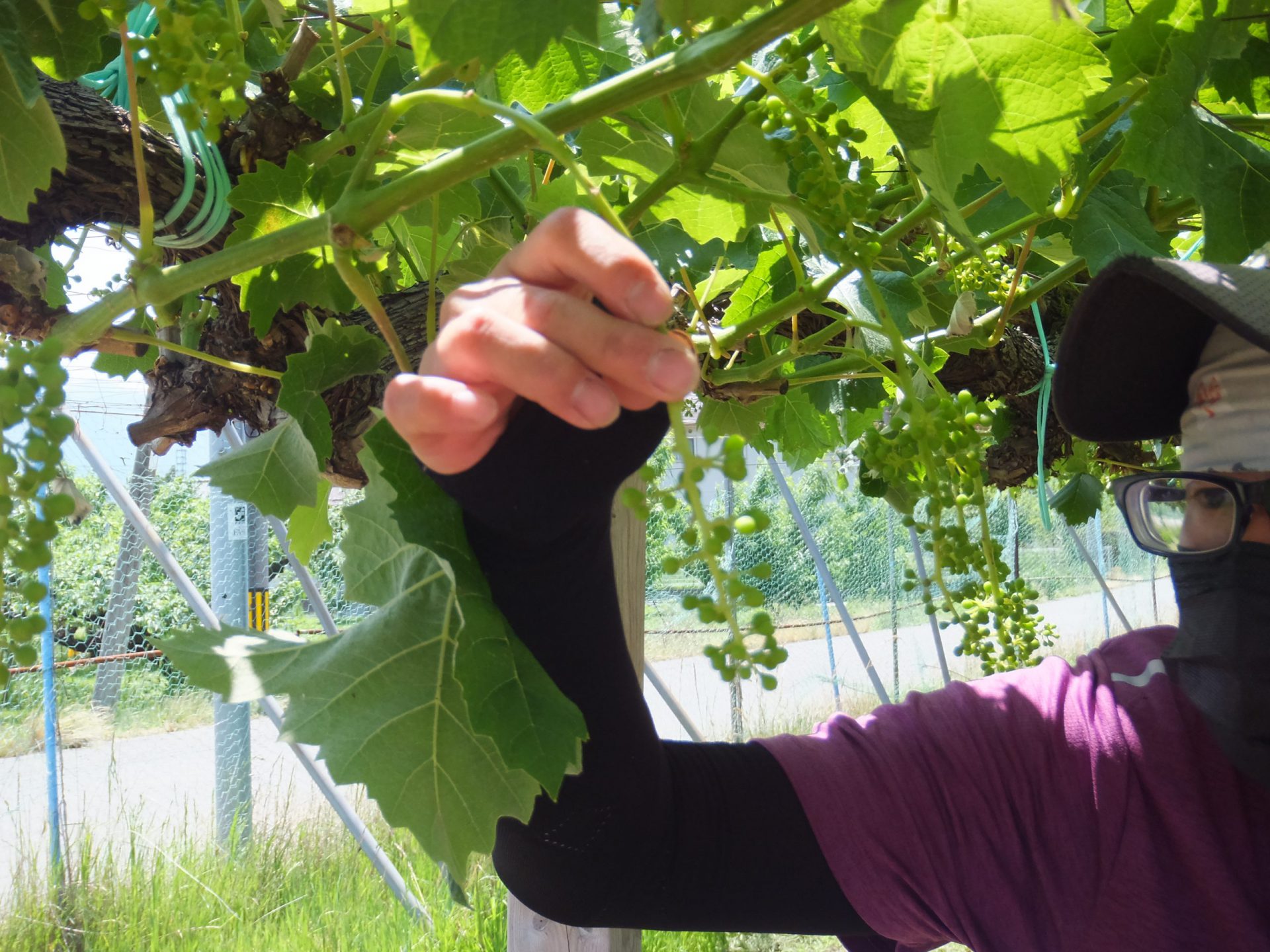 この摘粒作業のおかげで、ぶどうの実が大きくなることを知りました。