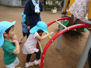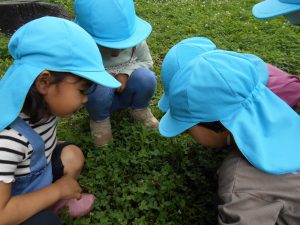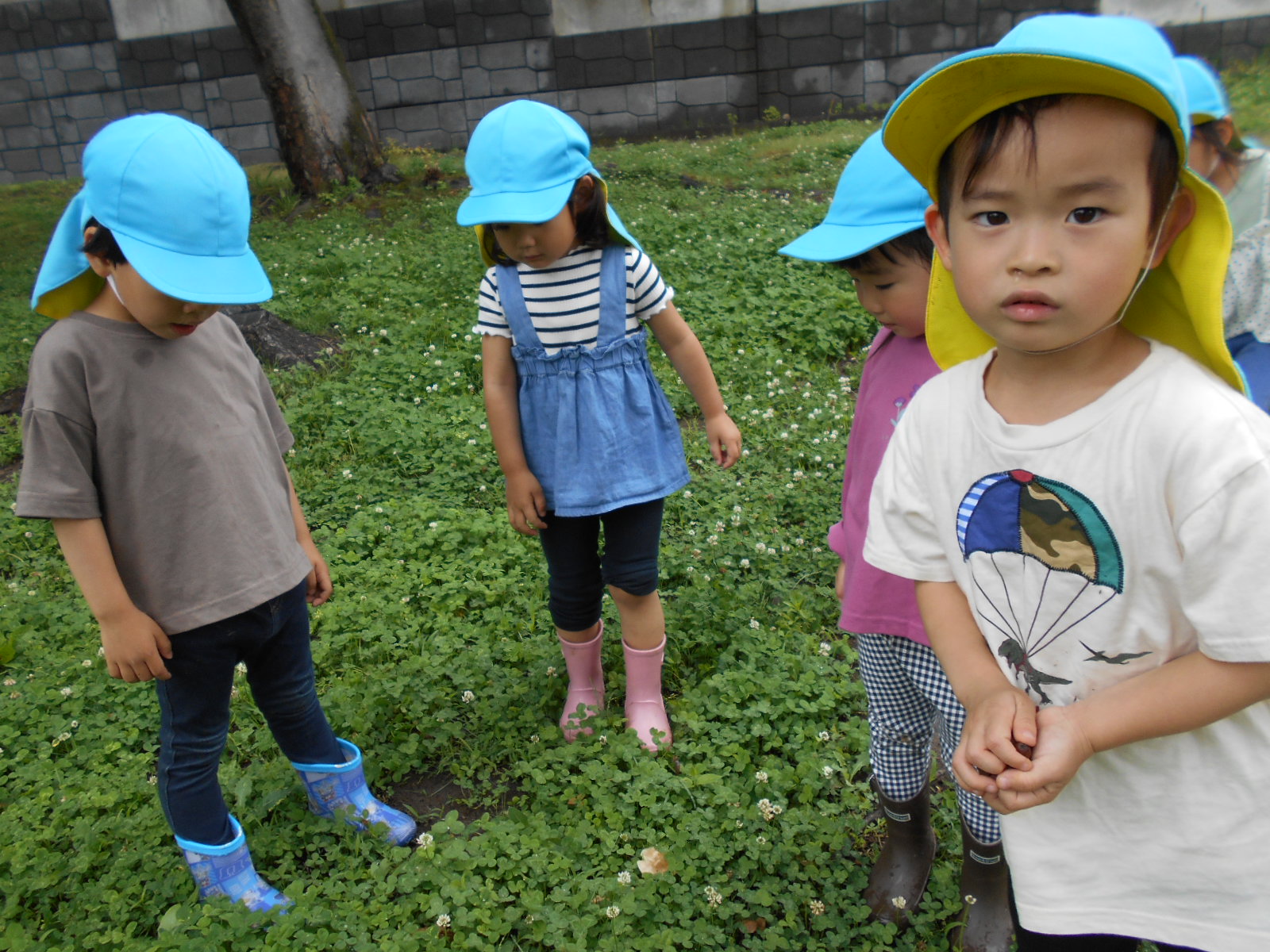 子どもたちの言葉を大切にできればと思い特に声はかけませんでしたが子ども同士でやりとりを楽しみながらキノコ探しを楽しんでいました。