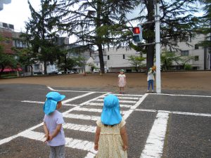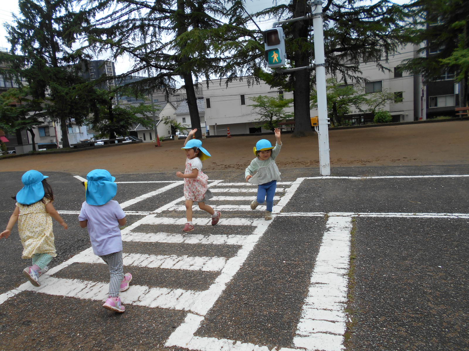 青になると嬉しそうに手を上げて元気よく渡っていました。