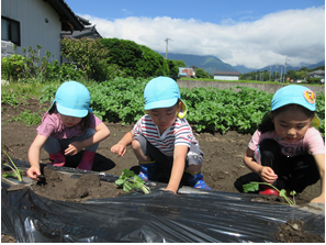 ・野菜を植え、育てることで野菜がどうやってできているかを知ることで、育てることの大変さや野菜ができた時の嬉しさを感じてほしいと思っています。また、野菜が苦手な子がいますが野菜を育てていく中で、苦手なものに挑戦する気持ちや、食べ物の大切さを感じ、心の成長に繋がってくれればと思い活動しています。