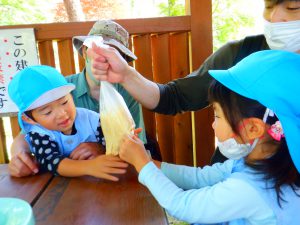 茹でている間に公園内を親子でオリエンテーリングにでかけます。