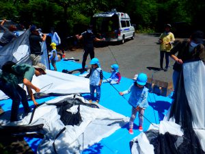 防災のグッズを使っていく中で、「人と人とが協力すること」の大切さを親子で感じられ、災害時に助け合うことの疑似体験ができたことはとても良かったと思う。