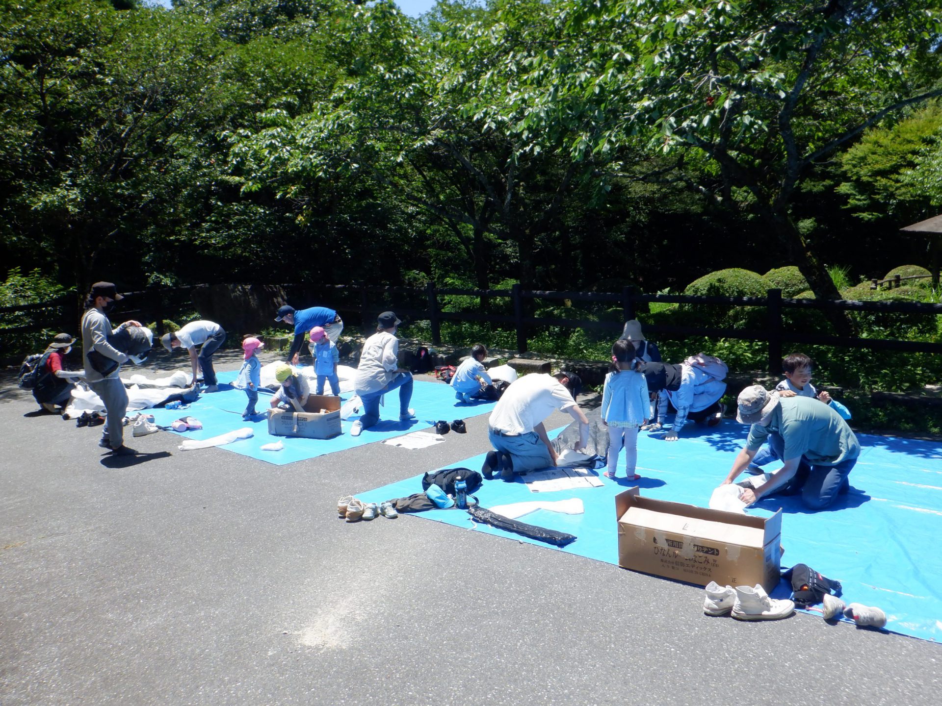 説明を聞いて広げてみたものの、やっぱり自分たちだけでは難しく、自然と周りの親子さんと協力しあう姿が見られました。