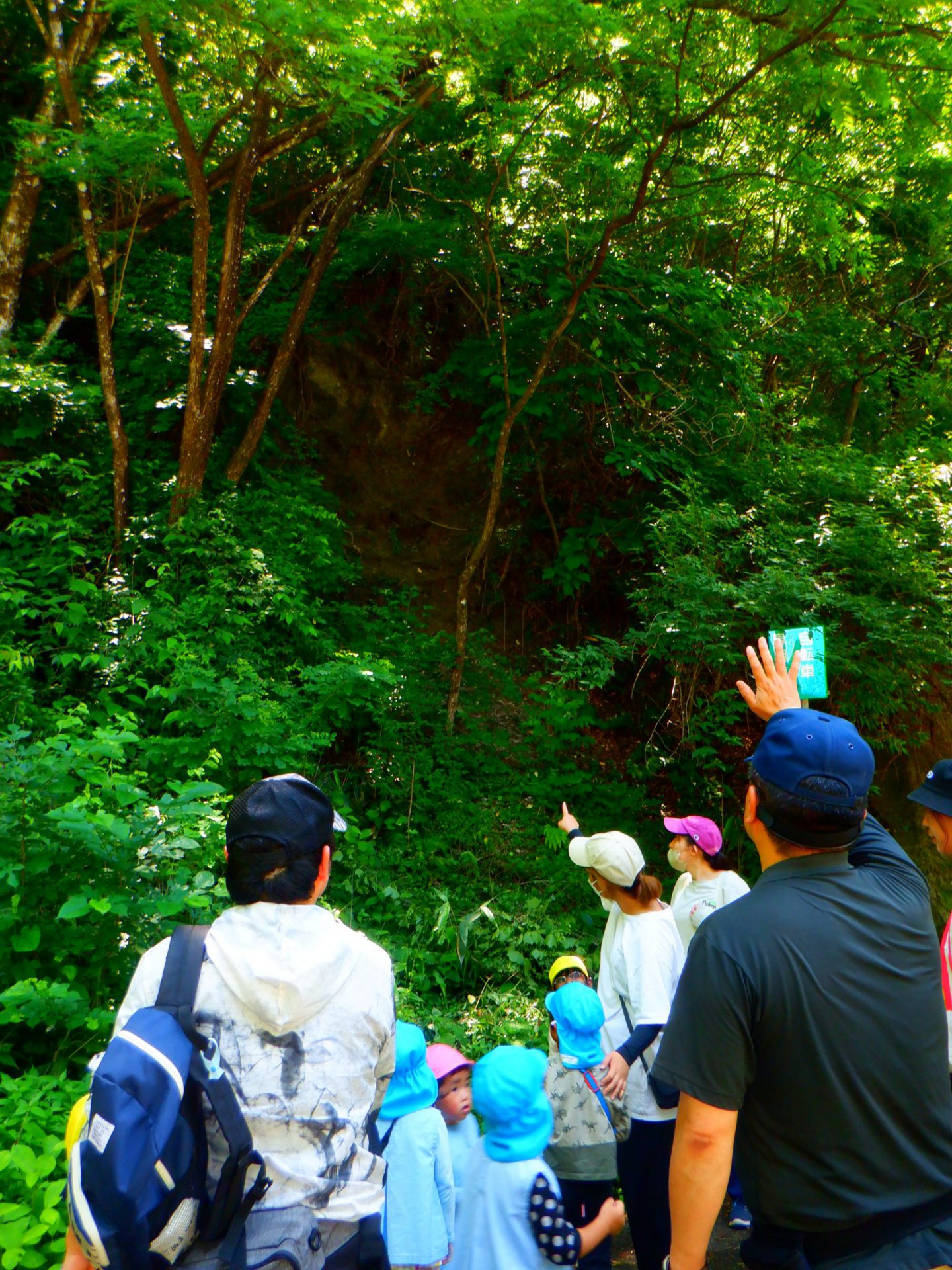 オリエンテーリングの帰り道、花崗岩の地質が出ているところを見ながら、がけ崩れについてのお話しもしてくました。