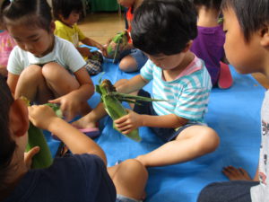 毎年経験している年長さんは年少さんにやさしく教えてくれました。