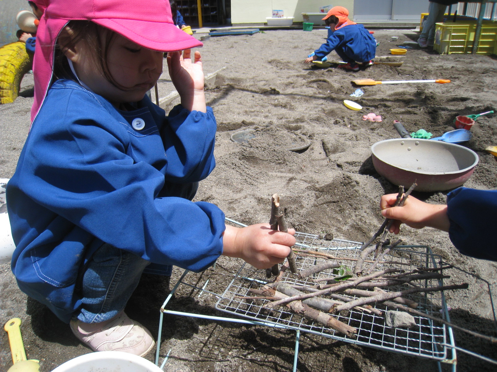 いたことがきっかけとなり、戸外に出ると砂場でバーベキュー
