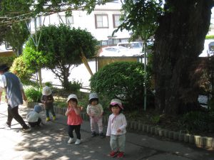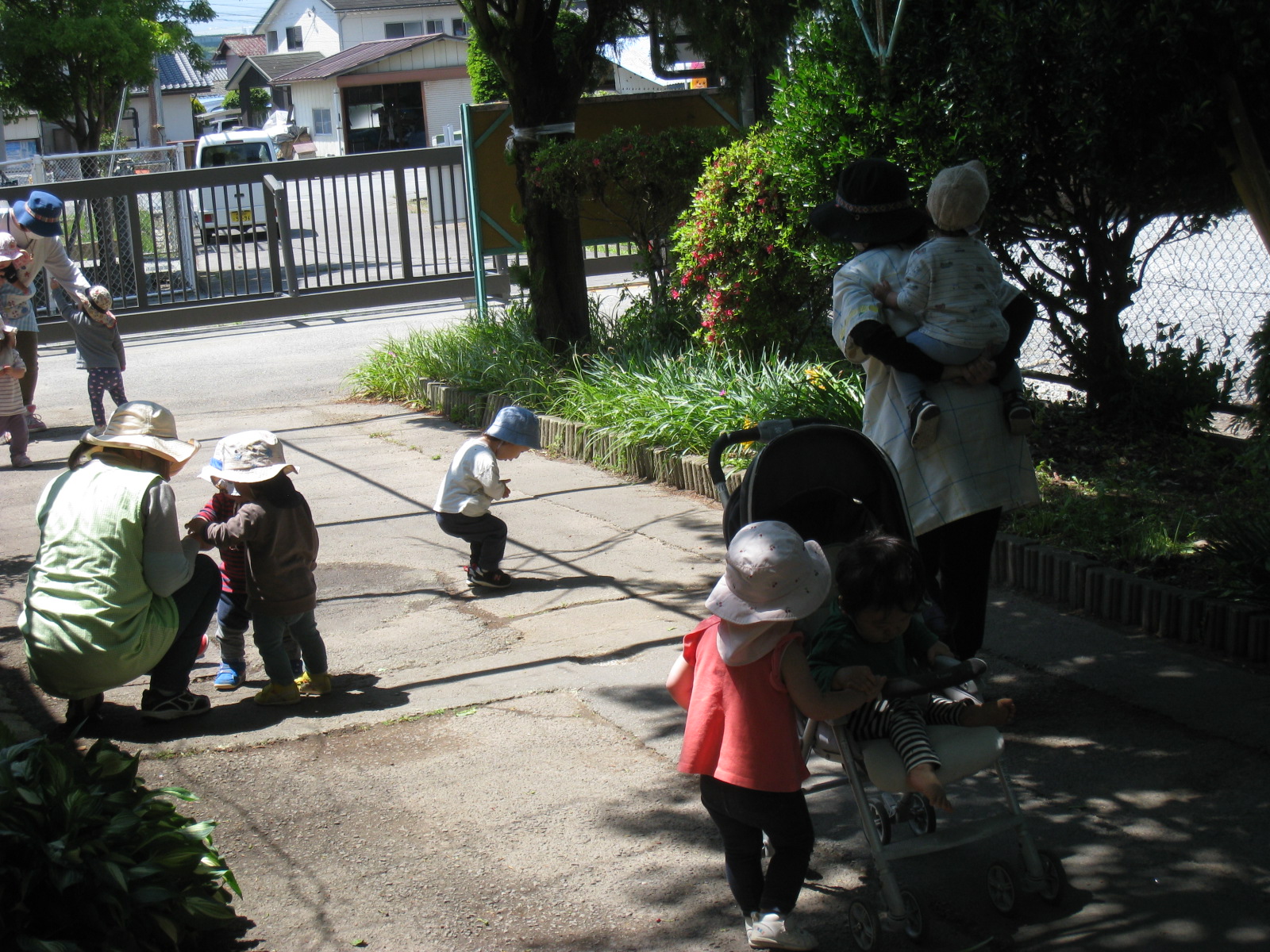 未満児さんも先生と一緒に園舎周辺をお散歩してみたよ!