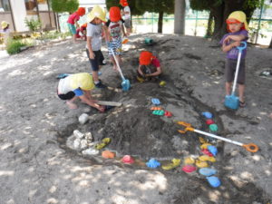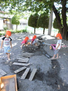 こちらでは、畑の土で≪泥んこ広場≫が出来ました。
