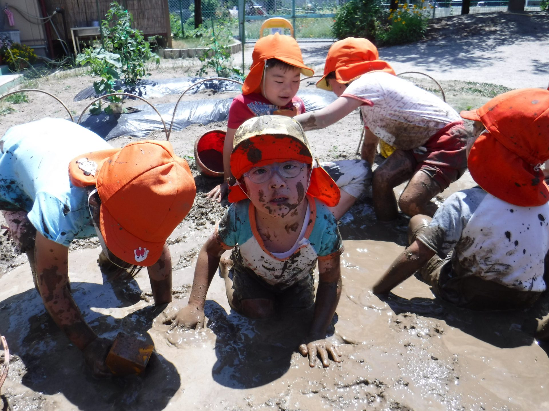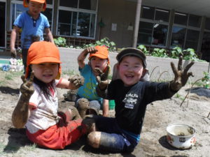 子どもたちは、存分に伸び伸びと泥んこ遊びを楽しむことが出来ました。