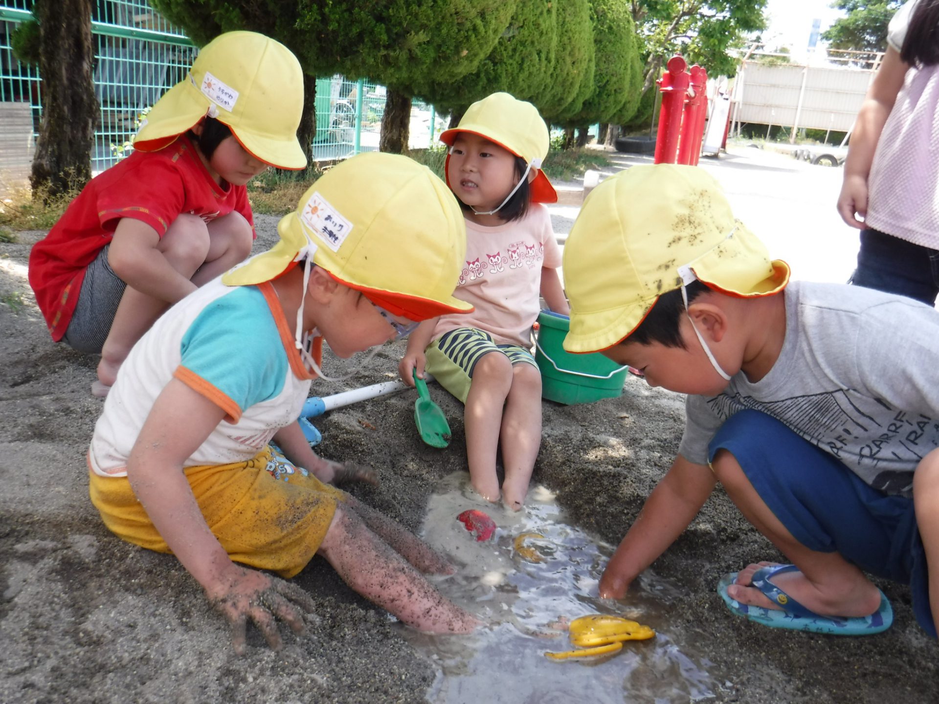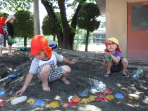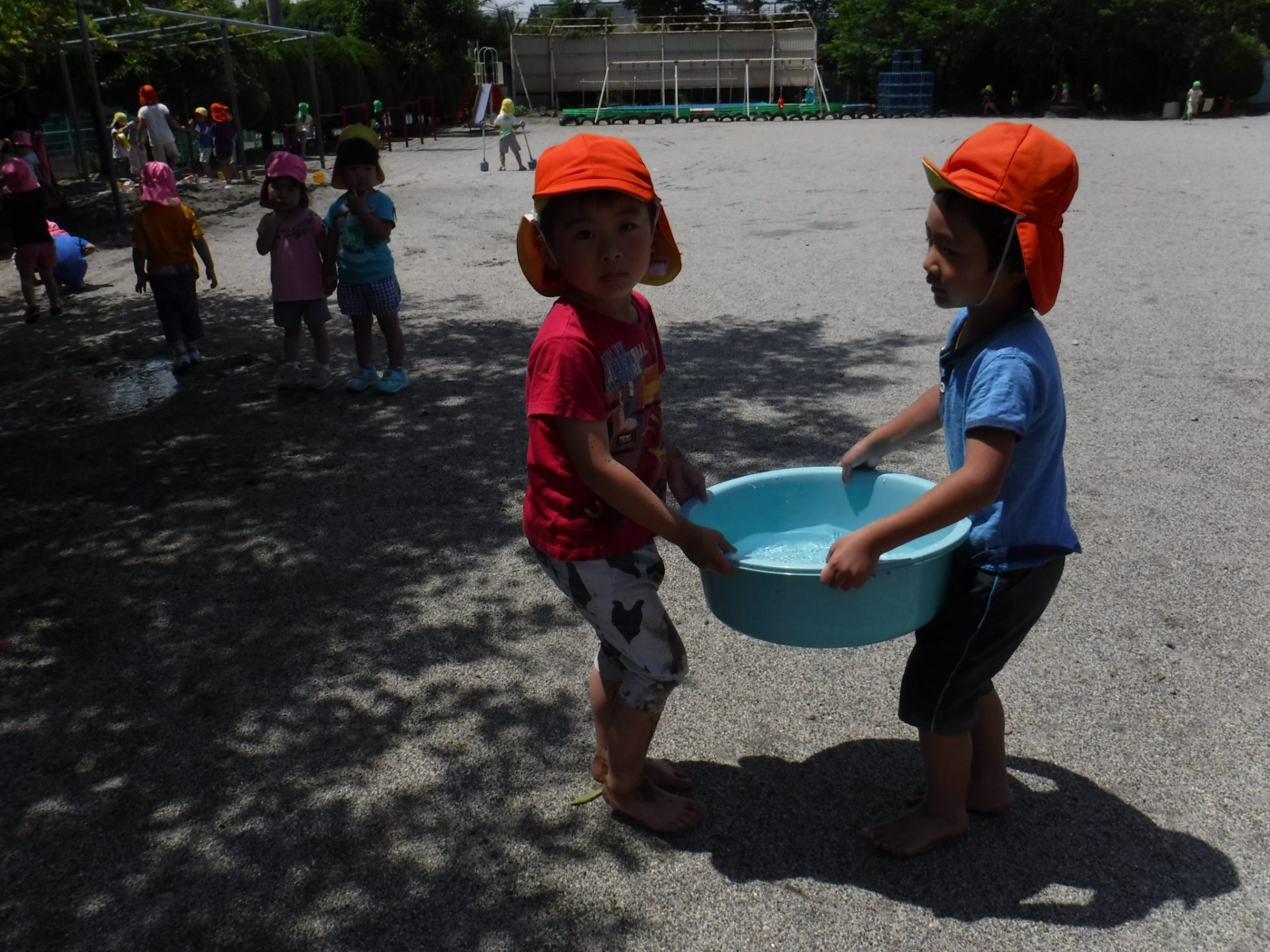 「水を流すよ~!」「水って、気持ちいいね~!!」