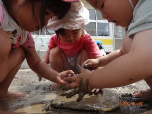 6月の良い天気の日☀泥遊びをしました。