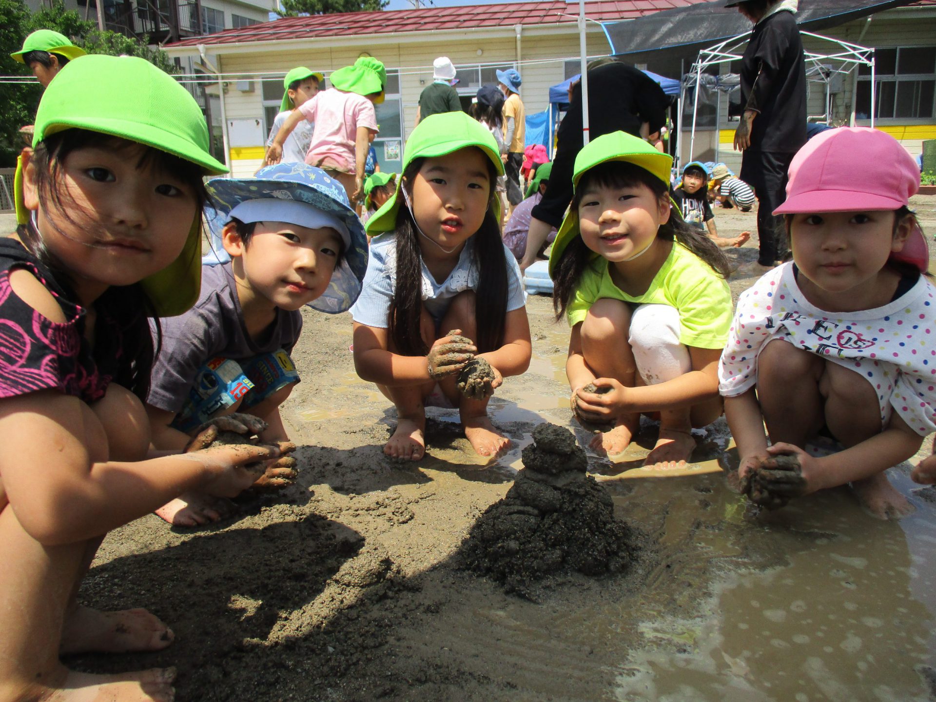 「泥水の上になって小さなお山を作りましょ~♪」