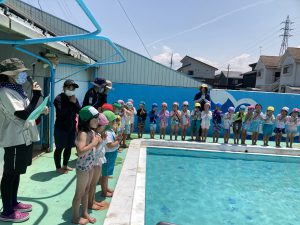 ・夏の間、安全に安心にプール活動が行えるよう、みんなでお願いする。