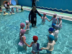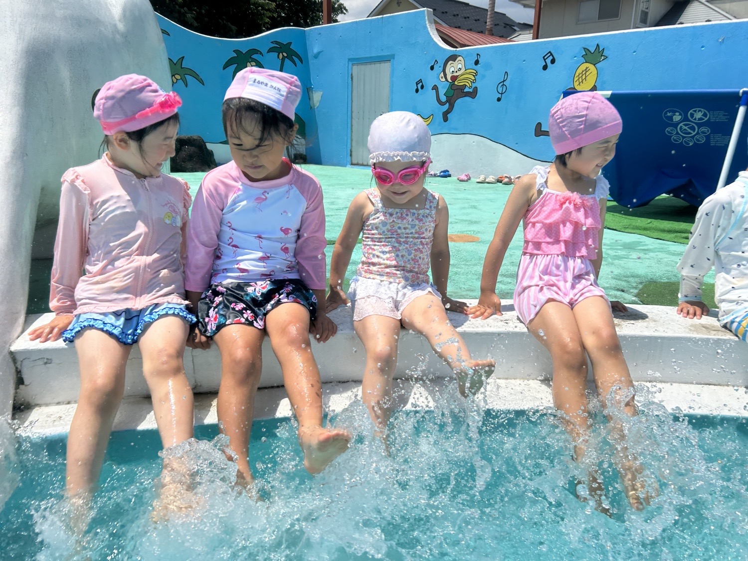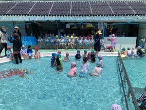 姉妹園の緑ヶ丘敬愛の子供達と合同でプール開きを行いました。