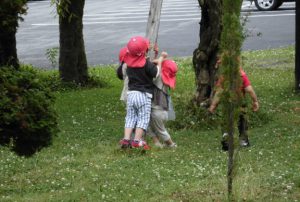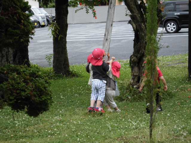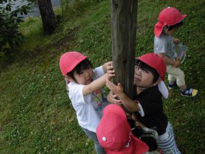 「木登りしてるの。なかなか登れないよ」