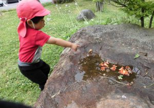 子ども達はコロコロ動く水に興味津々です。