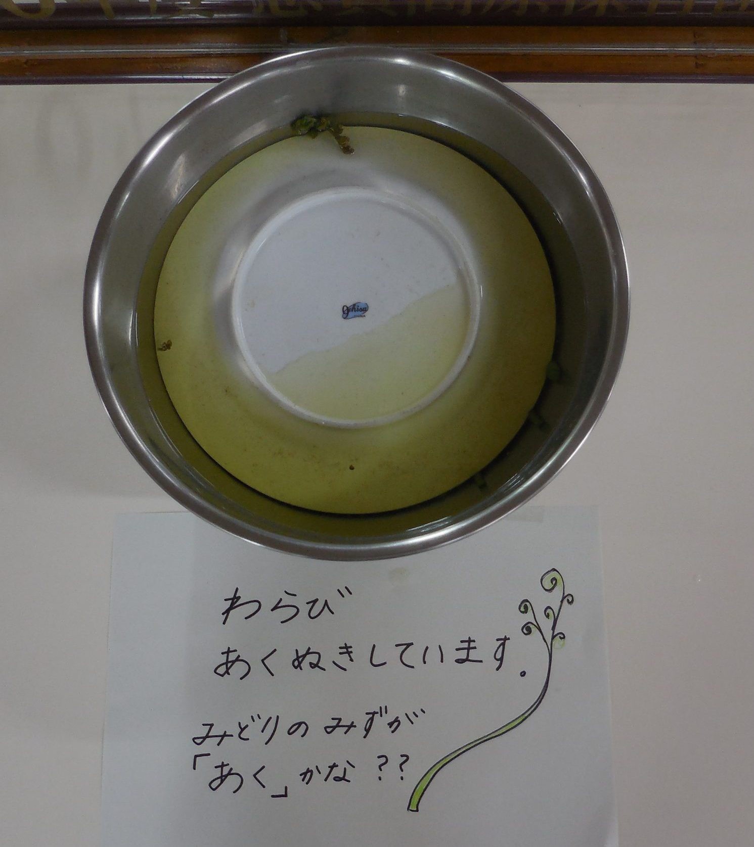 わらびの切り口に重曹を付ける作業は、すぐに真似し手際よく行っていた。