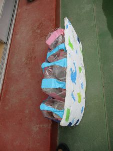 次の日には、「これでやる~」とスチロールの箱、長いマットでもやってみよう👍