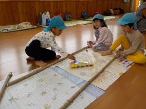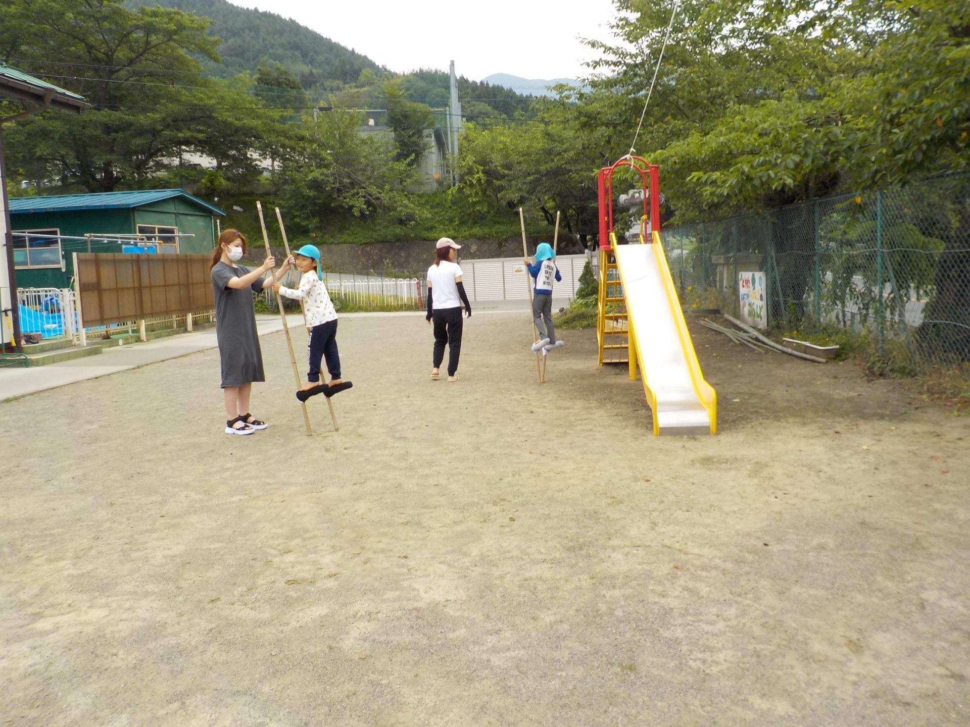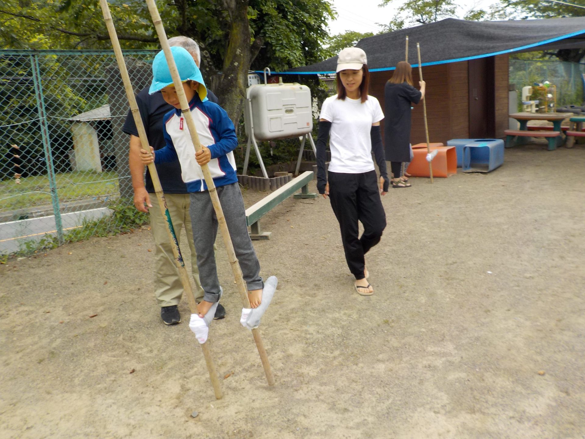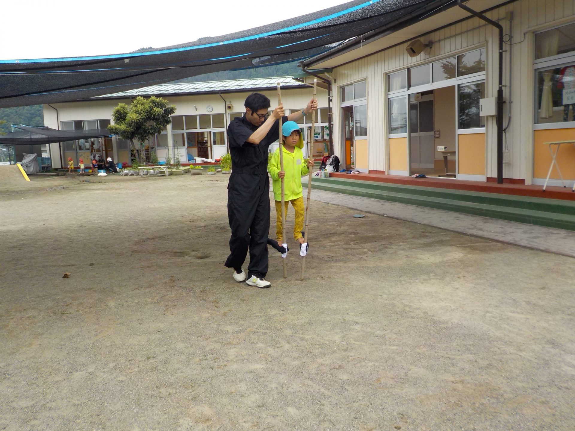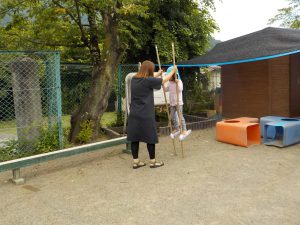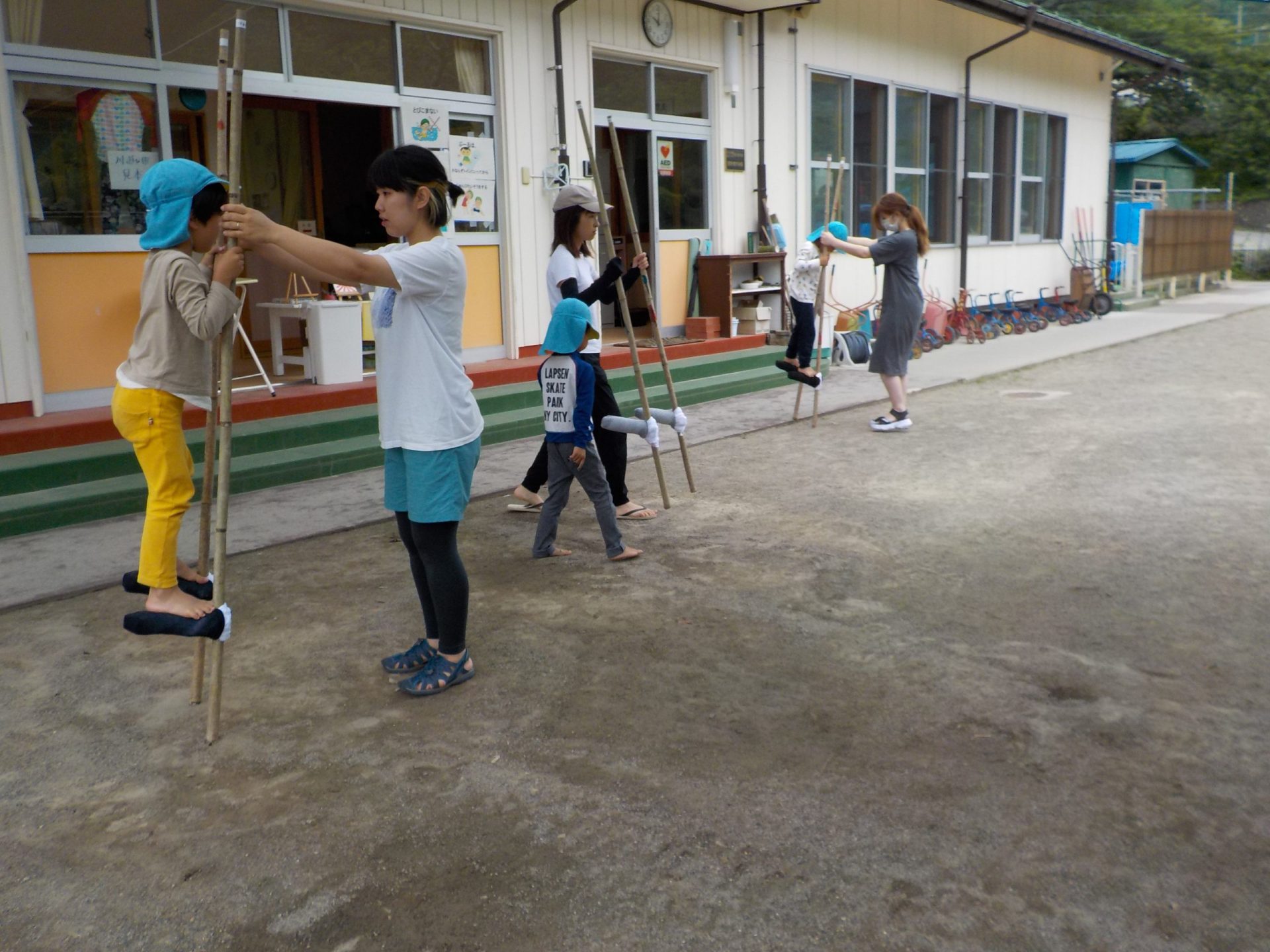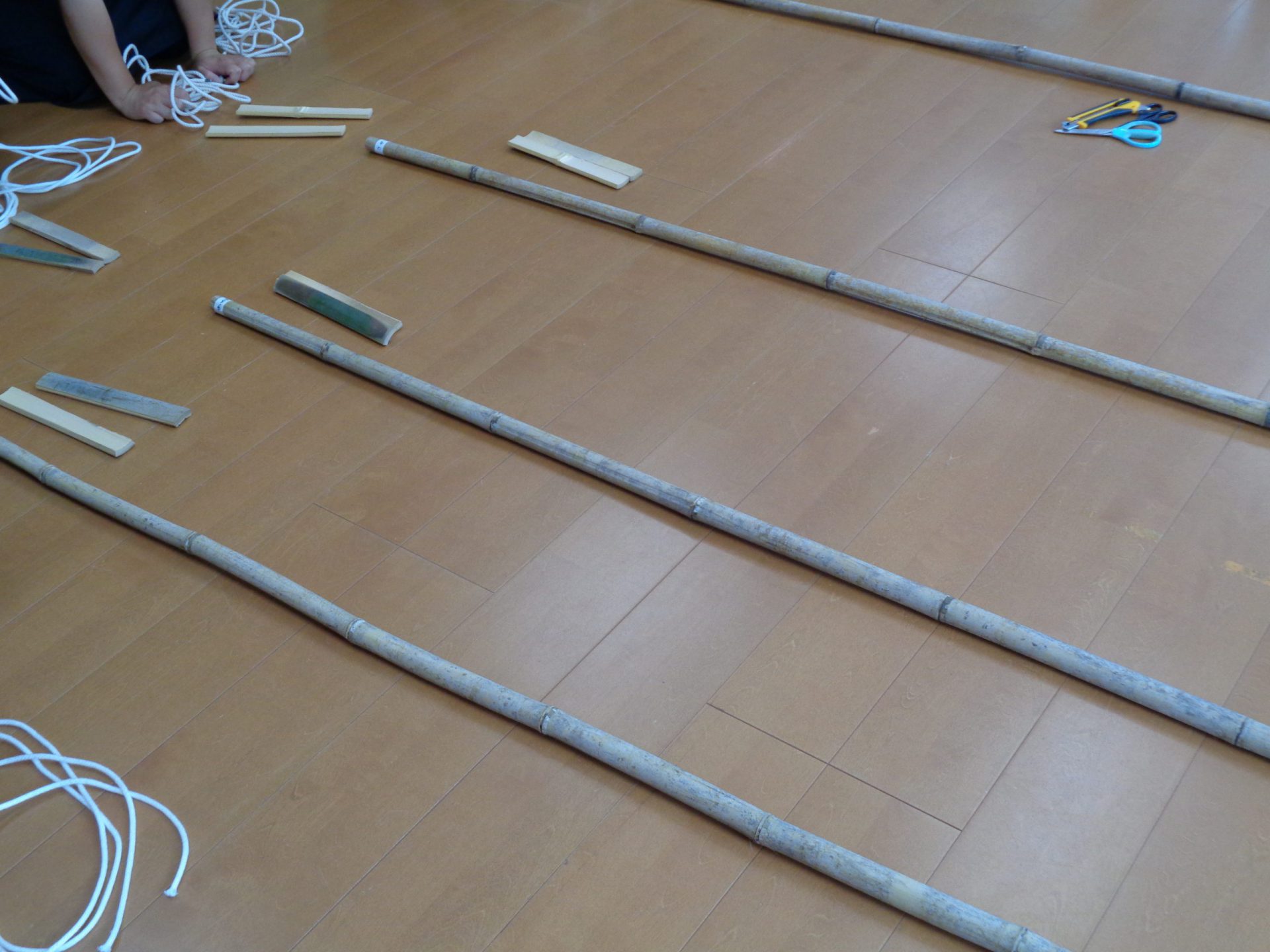 ・今まで、保育園でコツコツとやっていた竹馬。竹の竹馬は、今は材料が揃わず、なかなか手に入らないのですが、今年は業者さんのご協力もあって竹の竹馬が手に入りました。ありがたいことです。