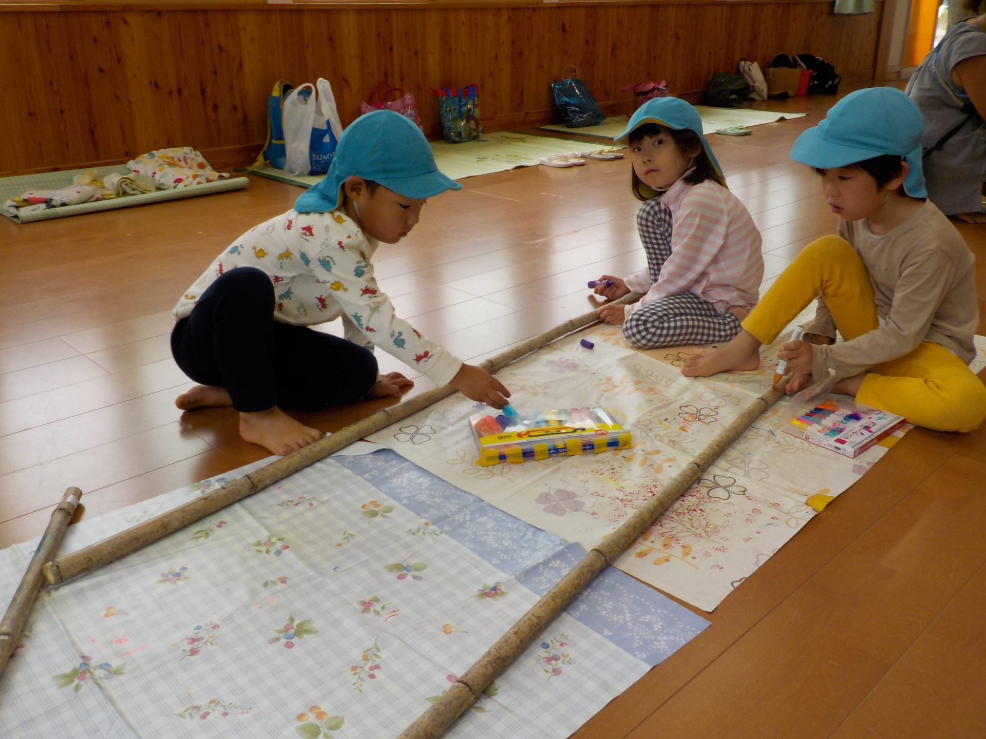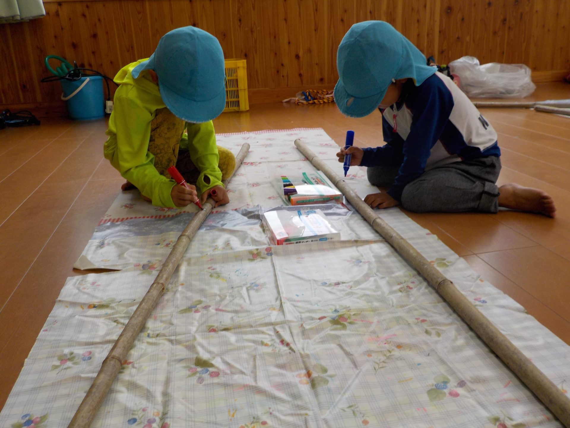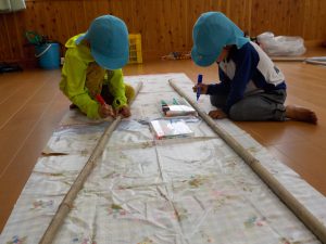 油性ペンで、思い思いに描いていきます。