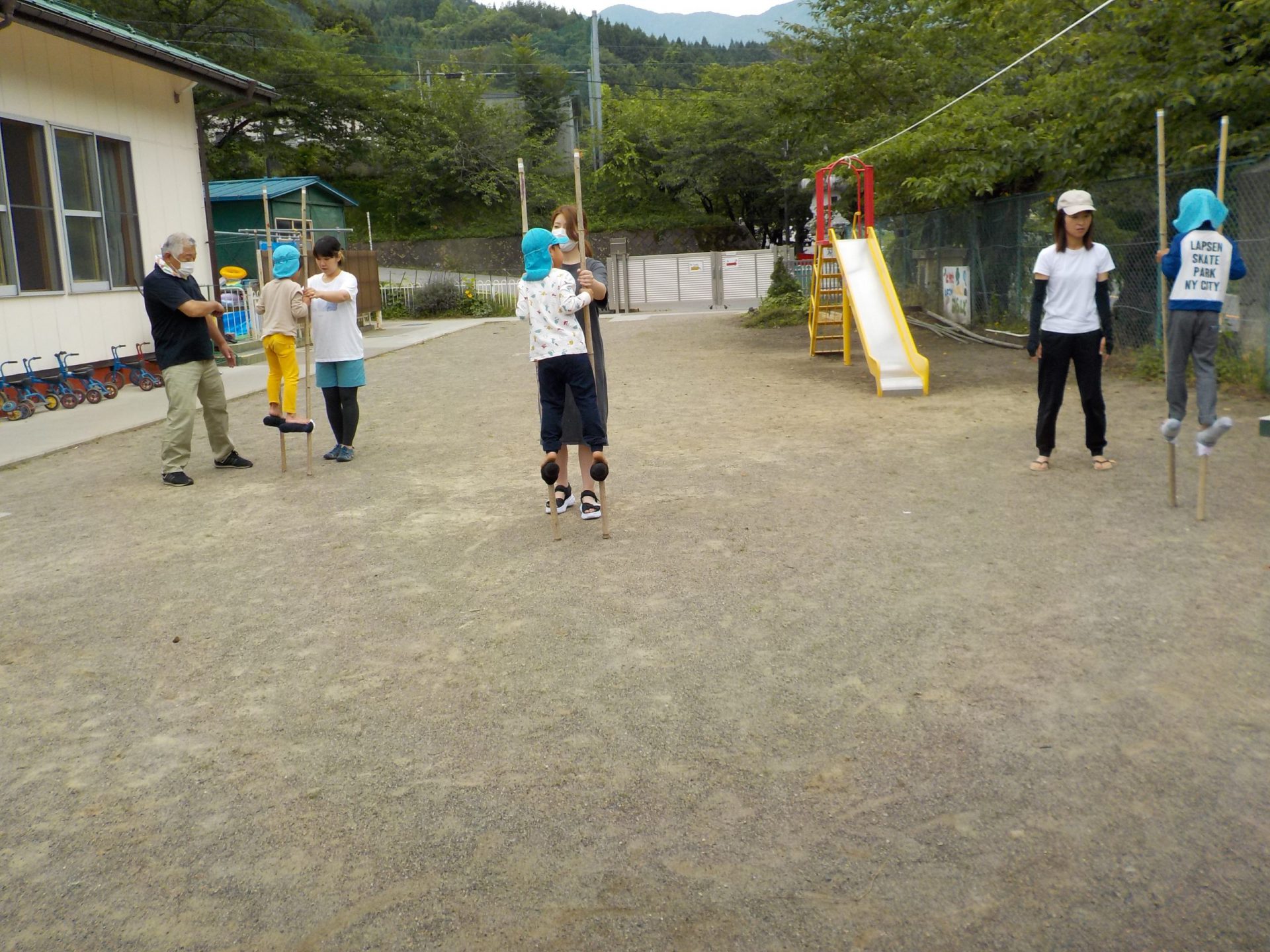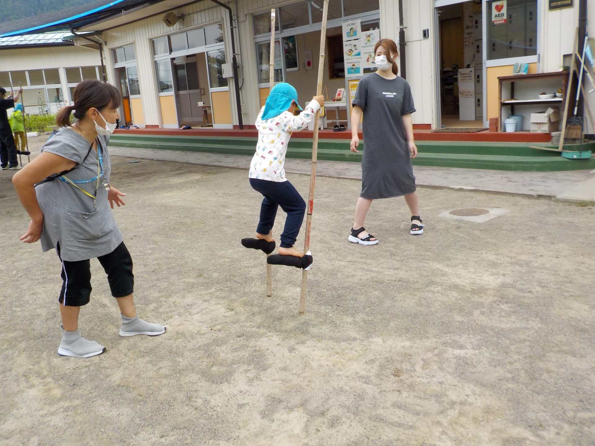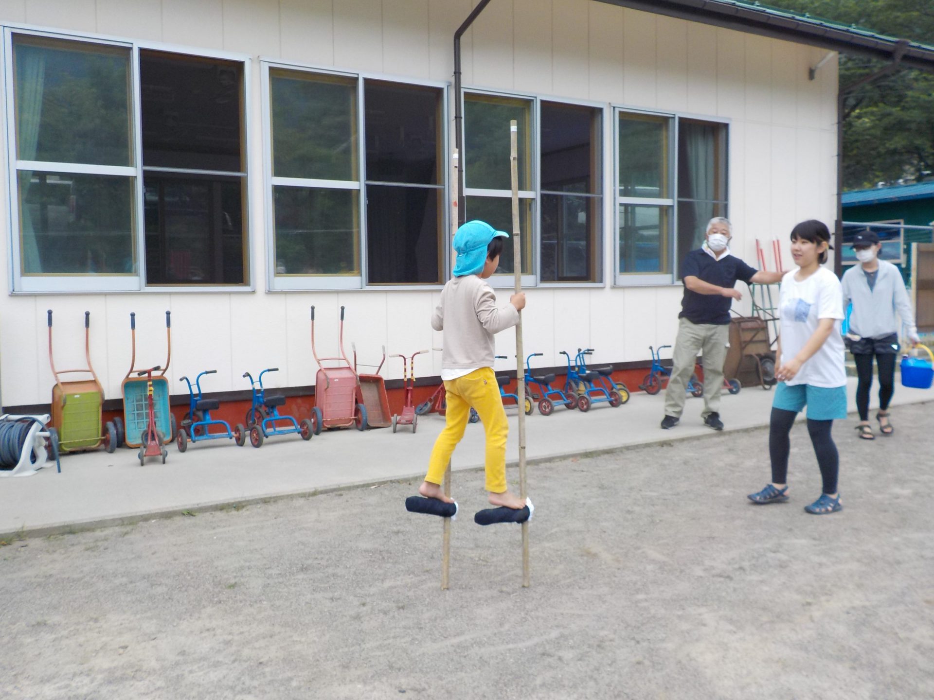 竹馬ができたから、乗ってみよう!
