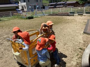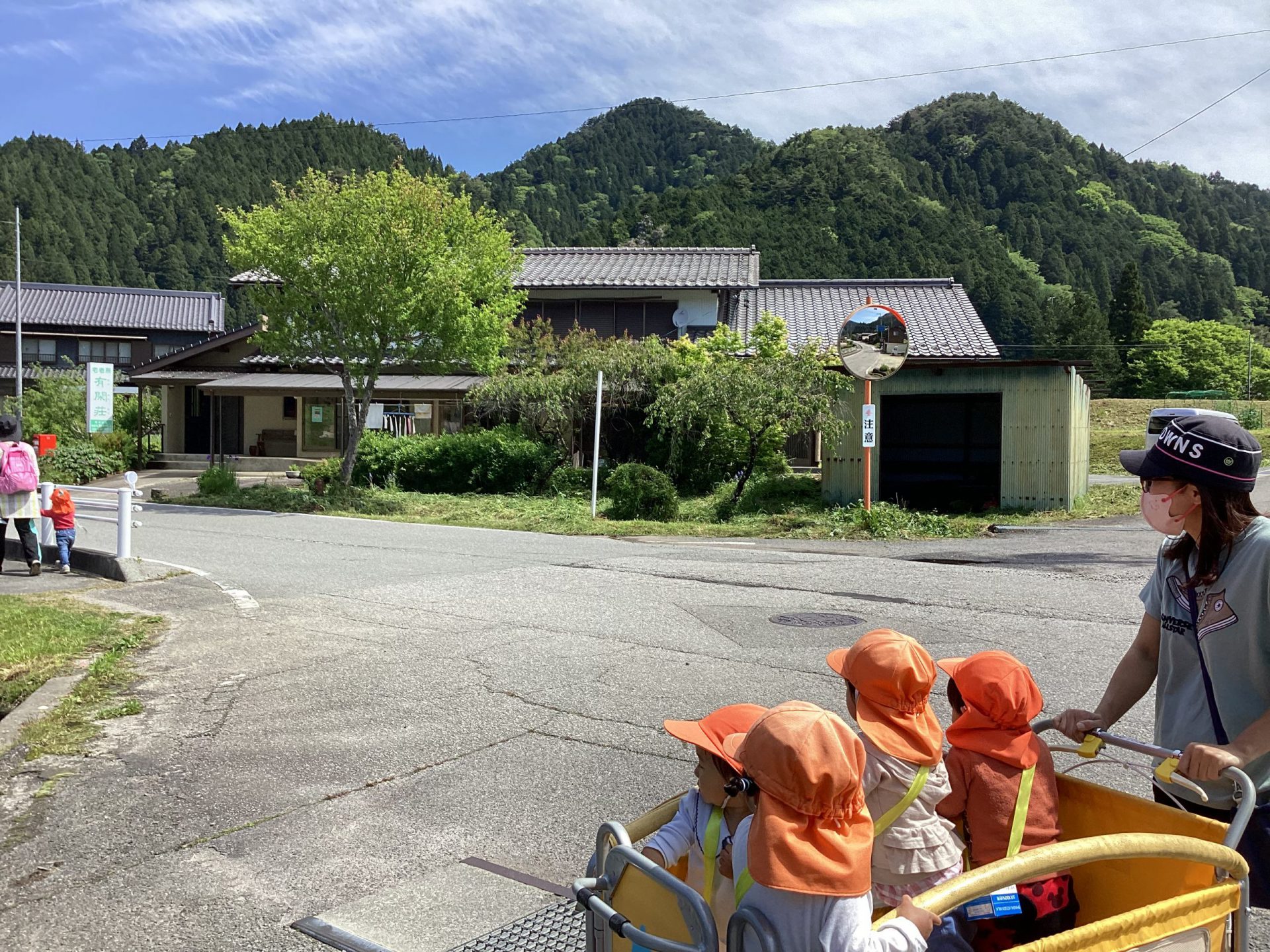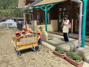 あひる組は歩いて10分程の森林組合まで足を延ばし、その後ひよこ組と合流します。ひよこ組は目的地までお散歩カーで向かいます。