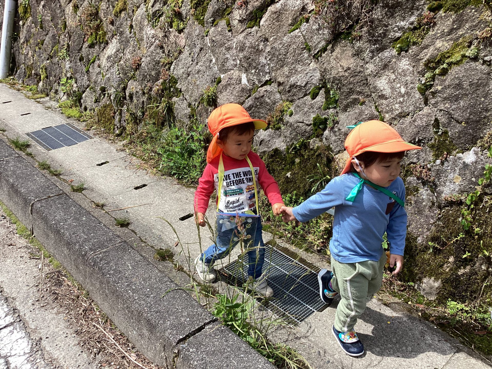 今回、未満児はあひる組(2歳児)とひよこ組(1歳児)の2クラス合同で元気に新井(あらい)地区の目的地まで遠足に行きます。