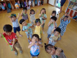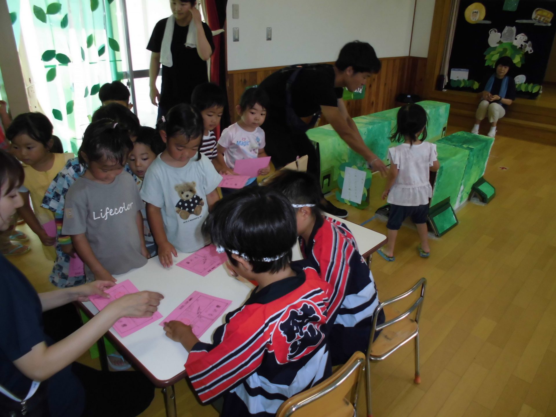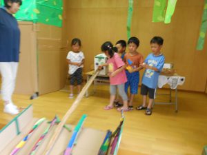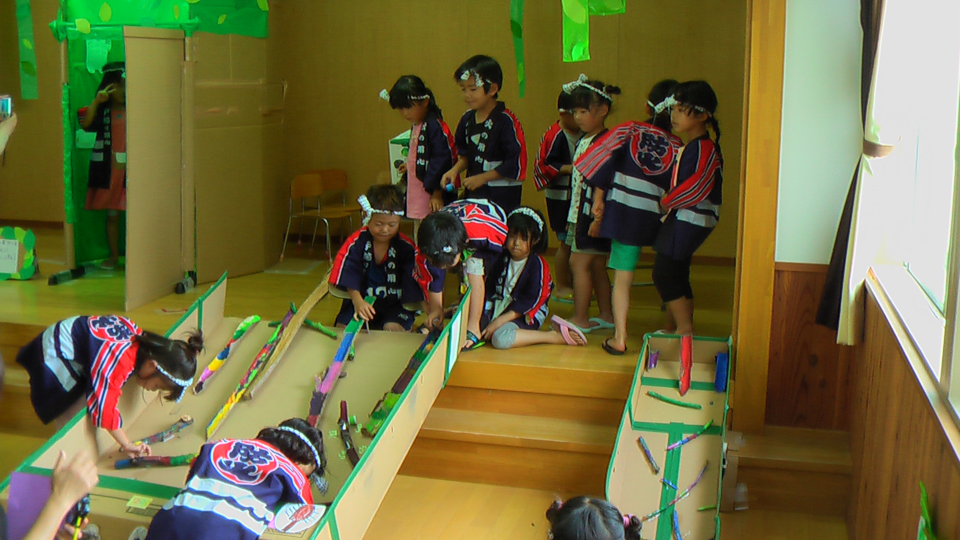 あんず組もつくし組もほたる組の準備する姿を見て、お店屋さんの準備をてつだいながら当日を楽しみにしてたよ。