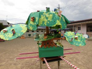 そして、保育士が思っている以上に子ども達のイメージが広がり、予想以上のツリーハウスが出来ました。