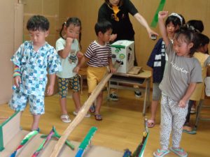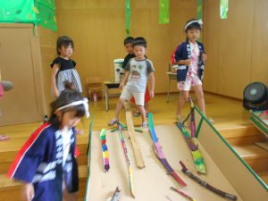 今年のほたる組は「木のおみこしを作りたい!」と今までとはテイストが違ったおみこし作りから準備。