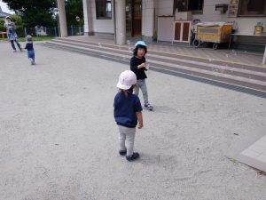 一人が遊び始めると、いつの間にか皆で楽しみ始めます。年長児が遊ぶ姿に、年中児・年少児も混ざって楽しんでいます。