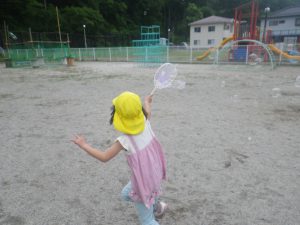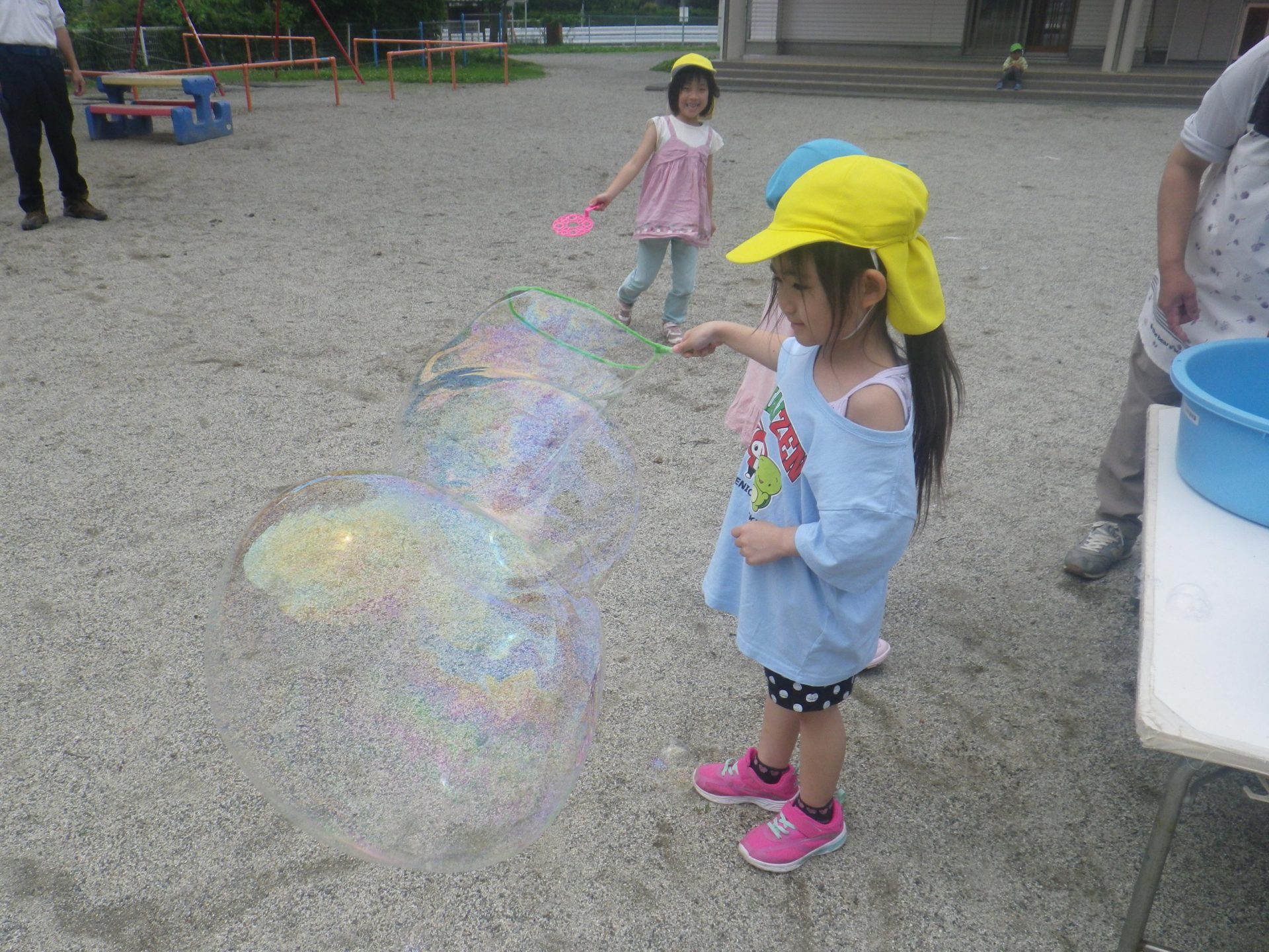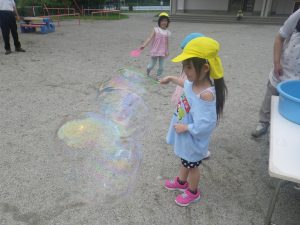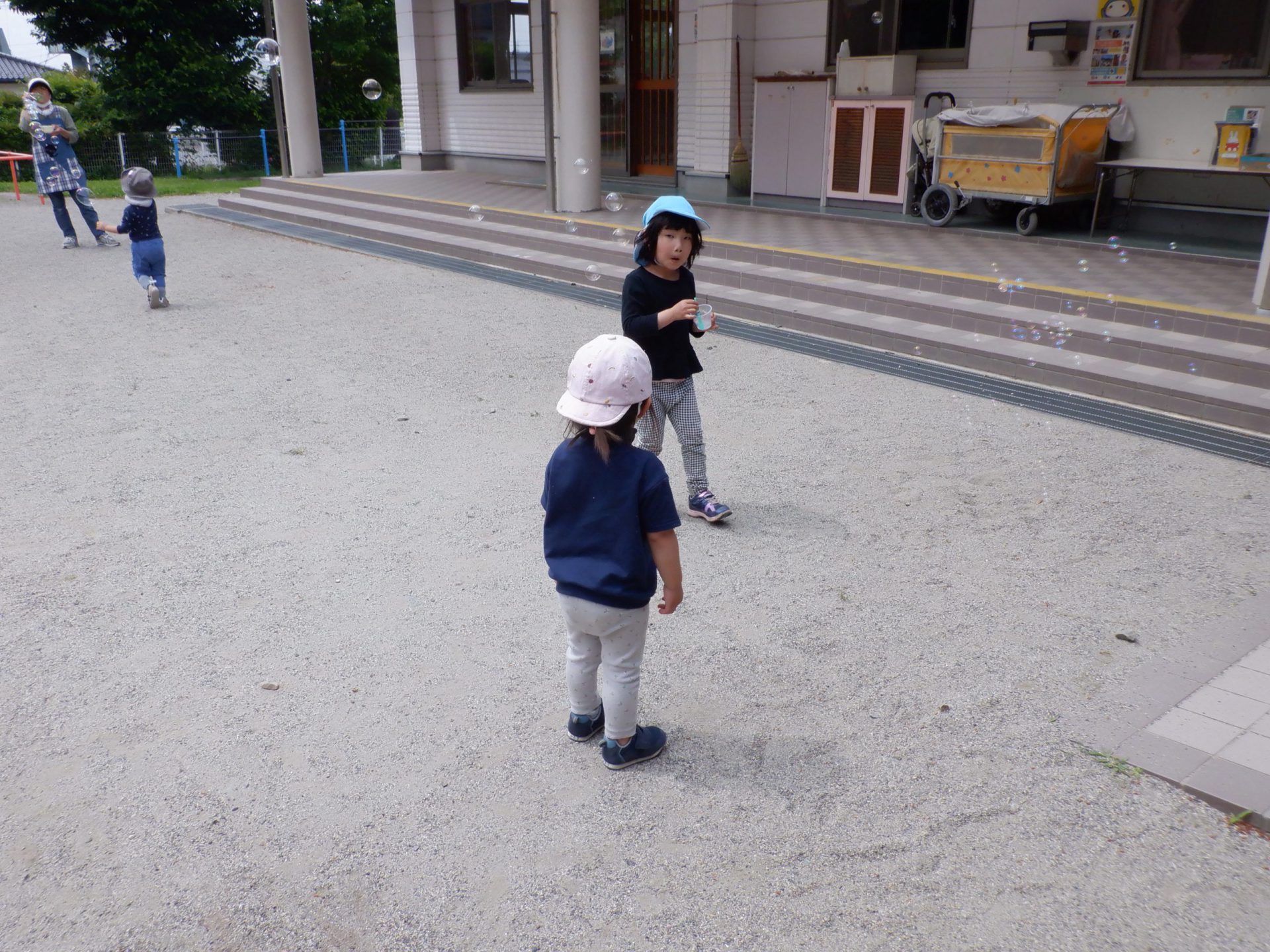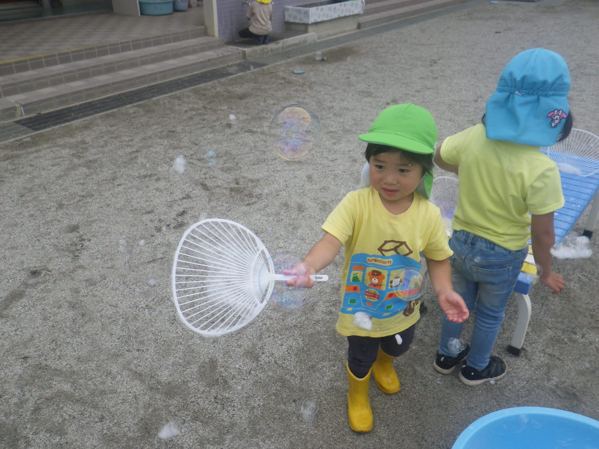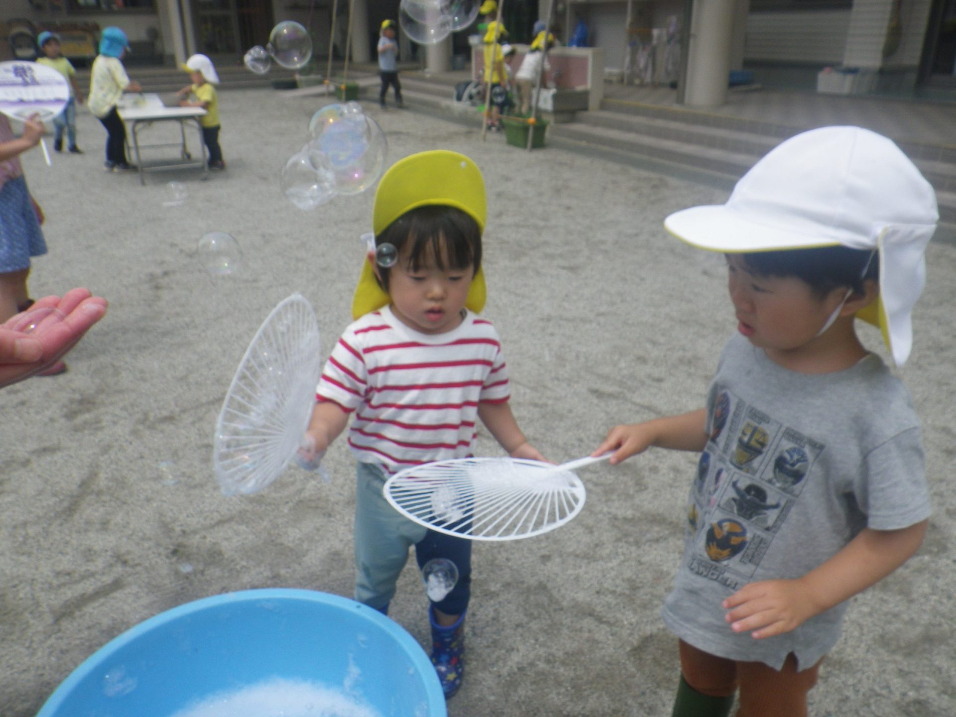小さい組さんも うちわを振るとしゃぼん玉ができることがわかり、すぐに楽しむことができました。