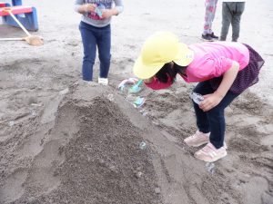 「何で割れないんだろうね」「砂のところが好きなのかな」「濡れてるから・・・?」