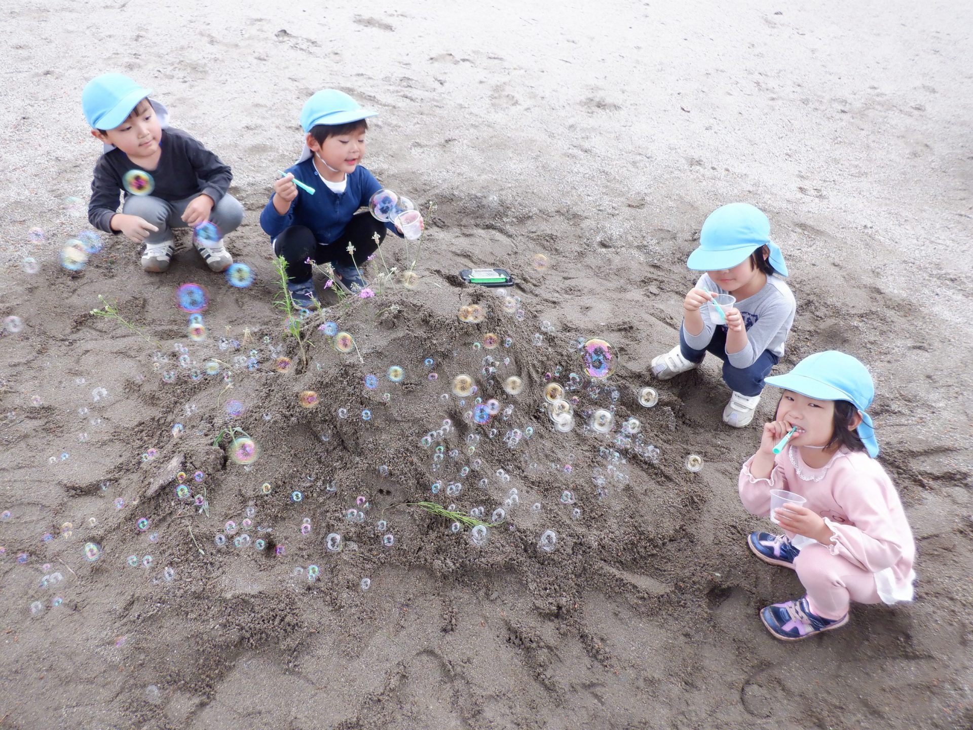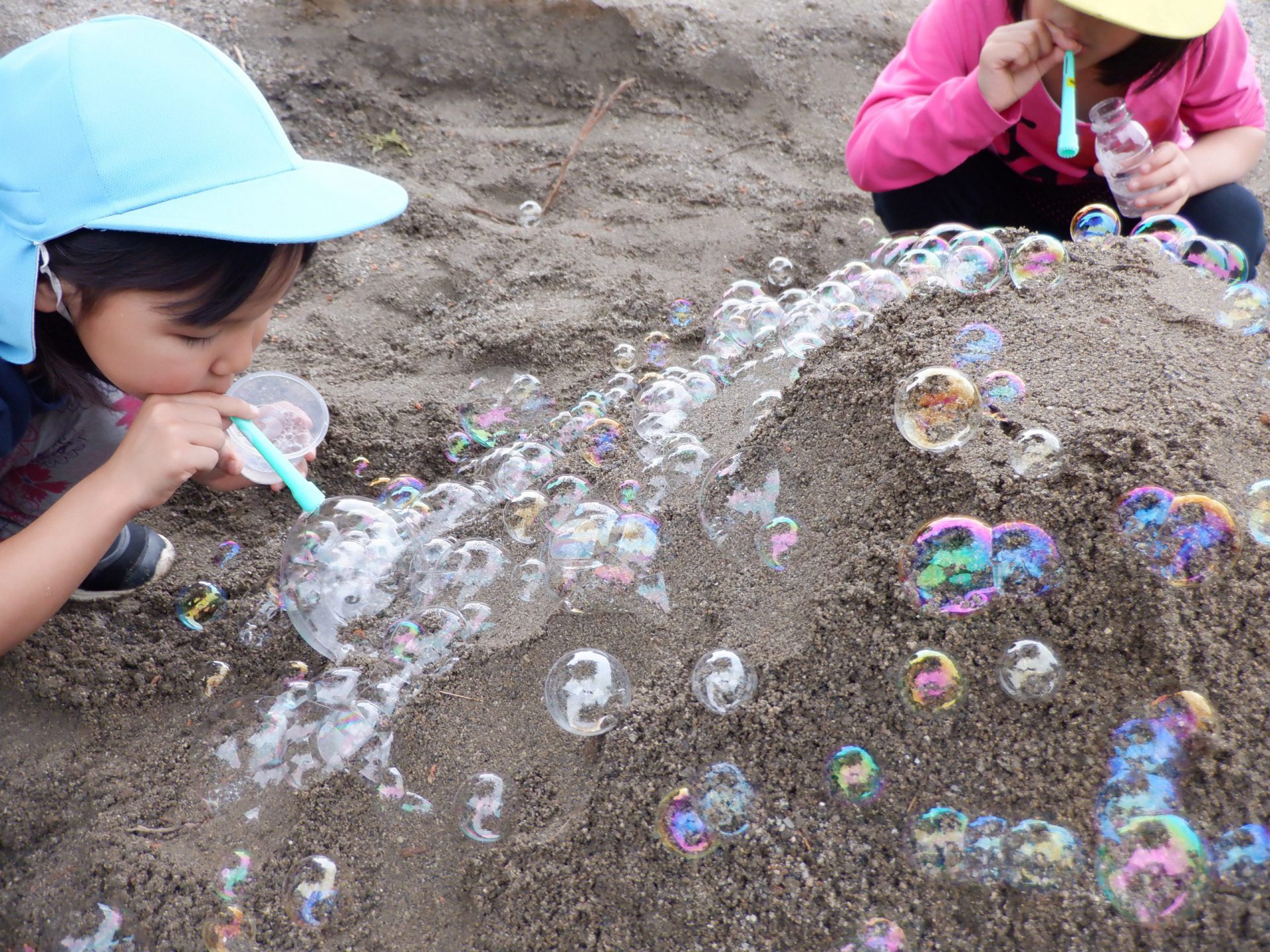 答えは出ませんでしたが、幻想的なしゃぼん玉の砂山に皆でうっとりしていました。