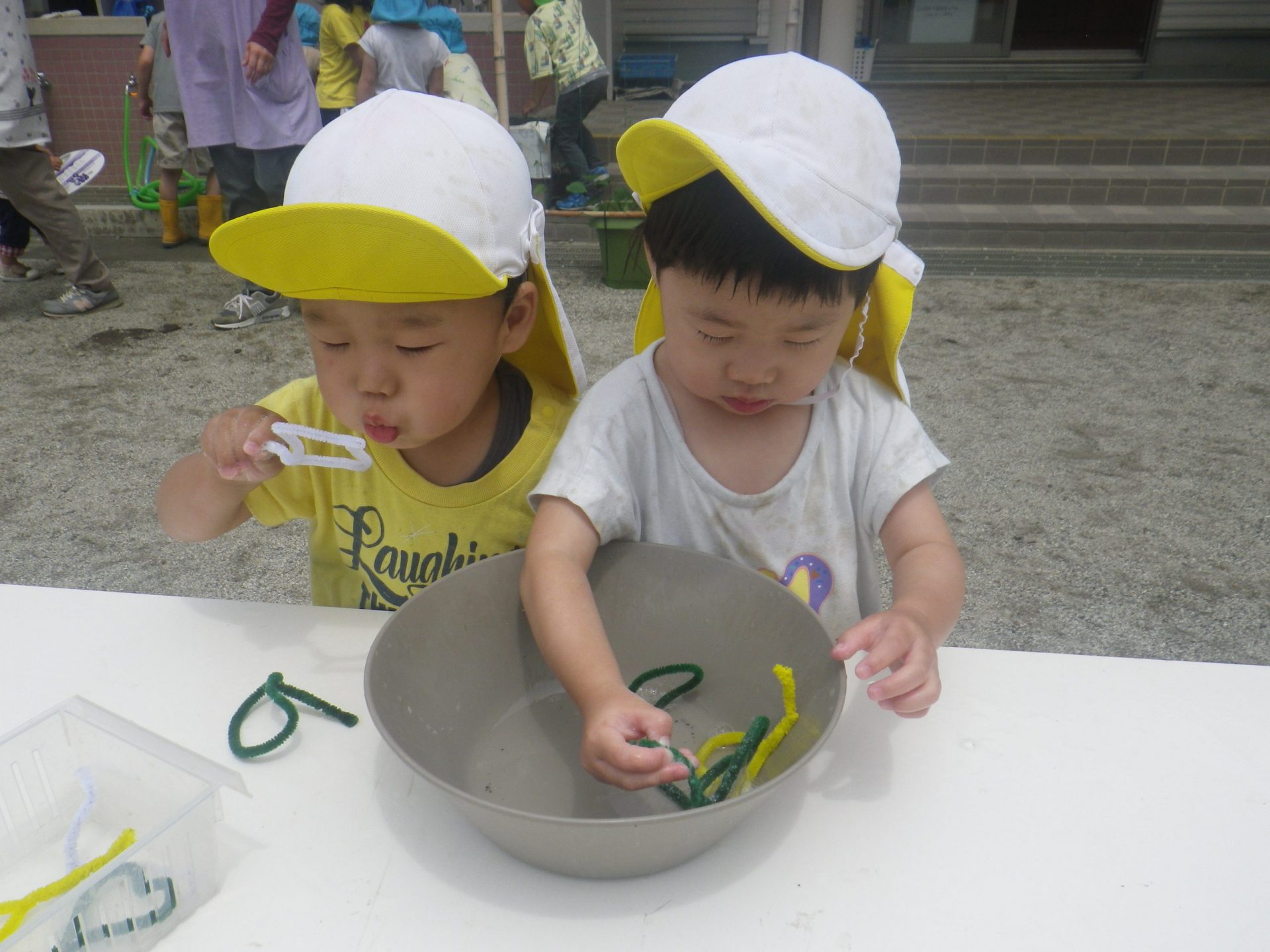 未満児さんが夢中になって何度も挑戦して楽しんでいました。