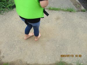 「足が冷たくなった~」と、上がってきた子はサラサラの砂を見つけました