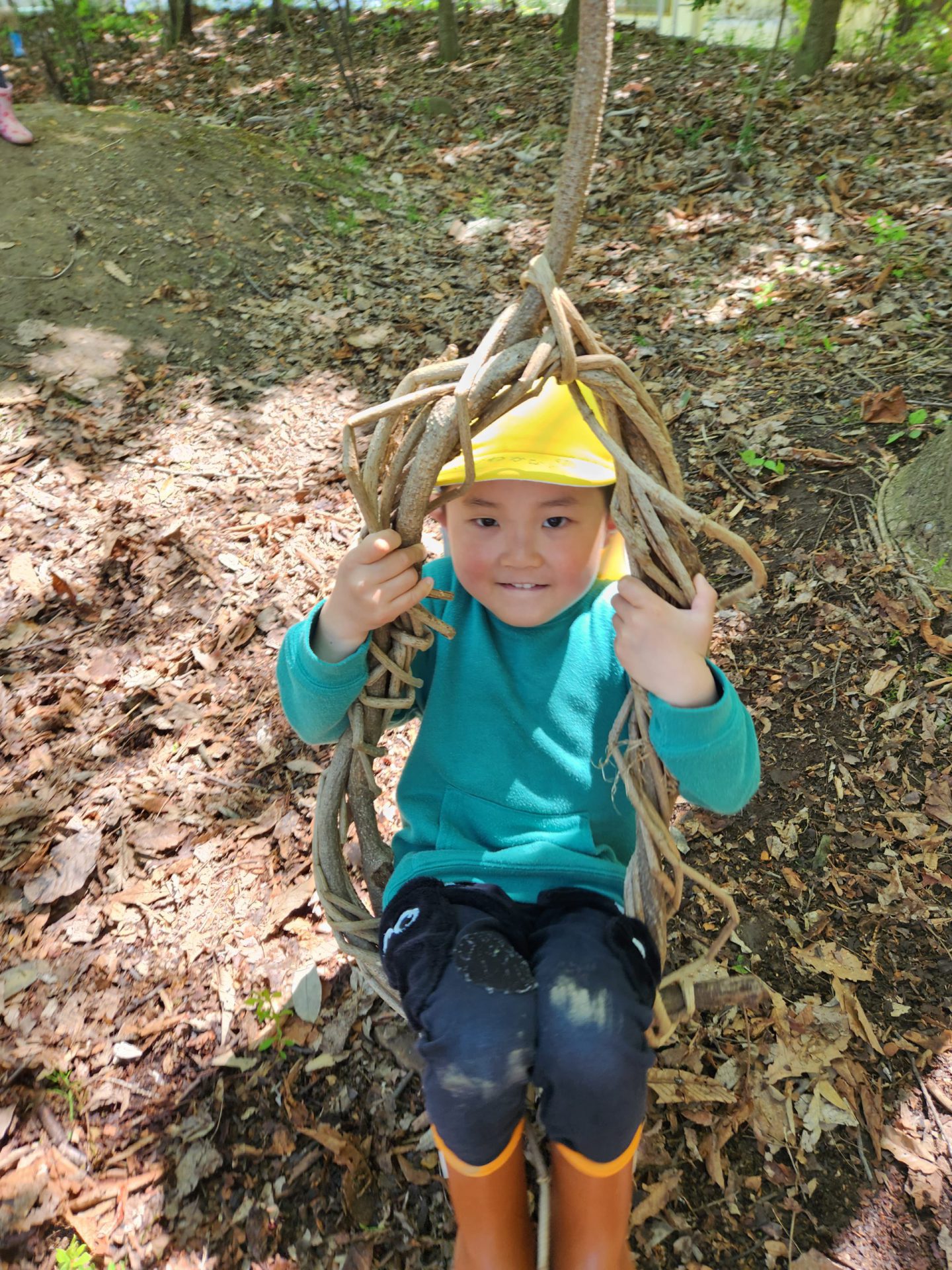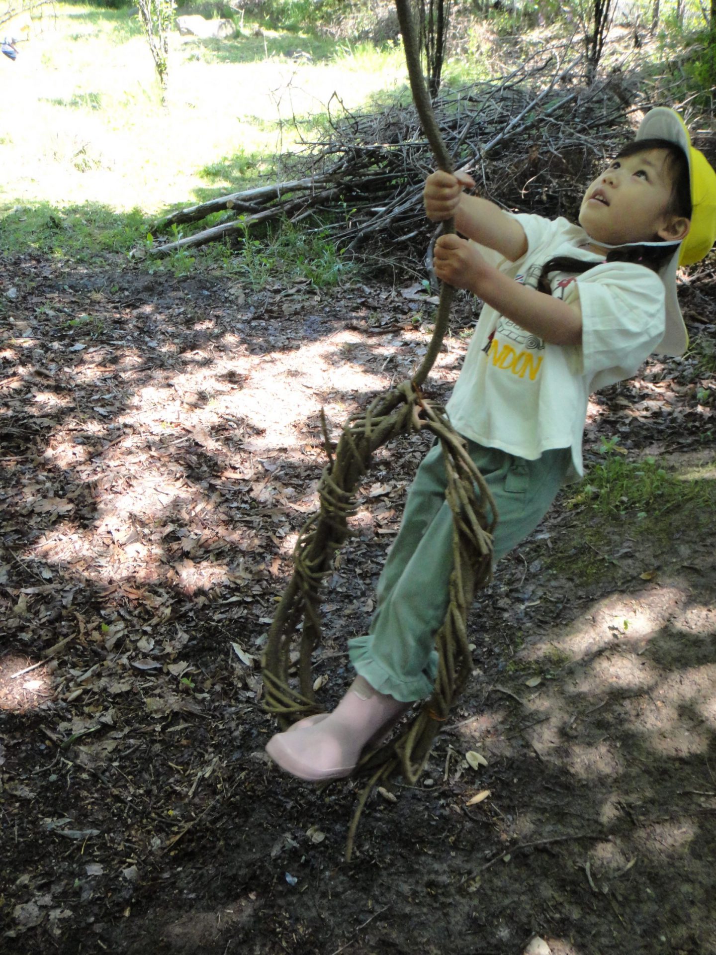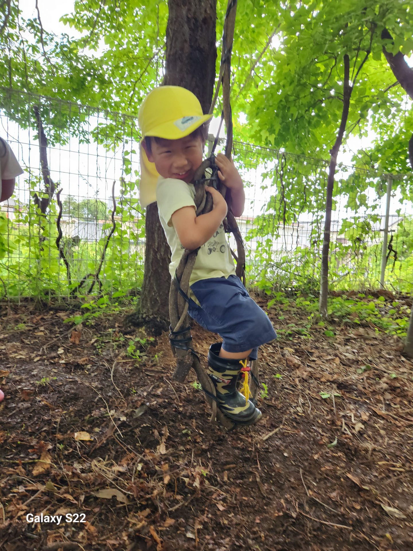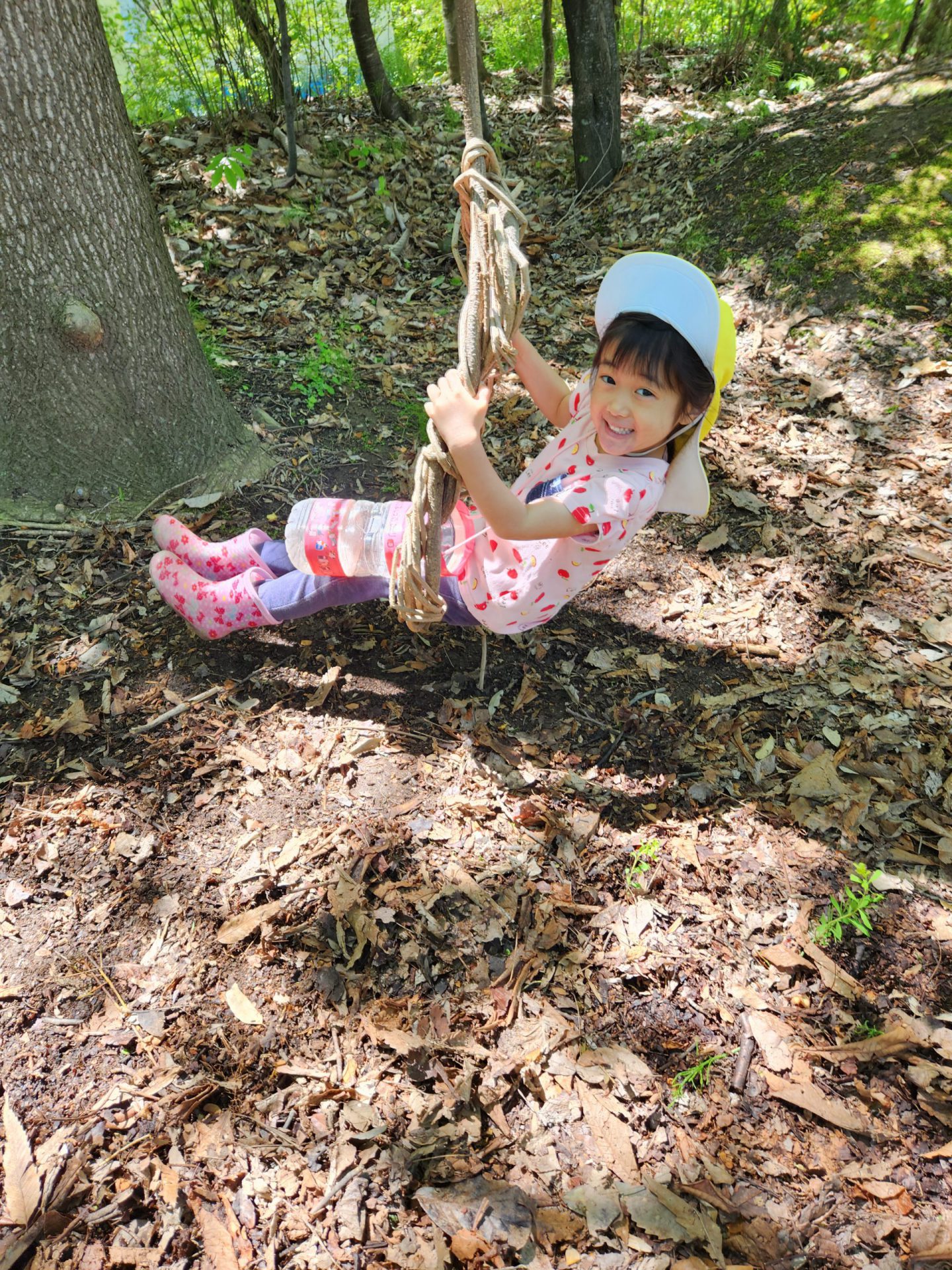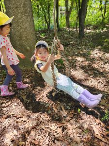 年中になりいつものようにあおきっ子広場にあそびに行くと、「先生!ブランコがあるよ」「アカハライモリが見えた!」と昨年度より更にパワーアップしている広場にまた目を輝かせあそび出す子ども達。